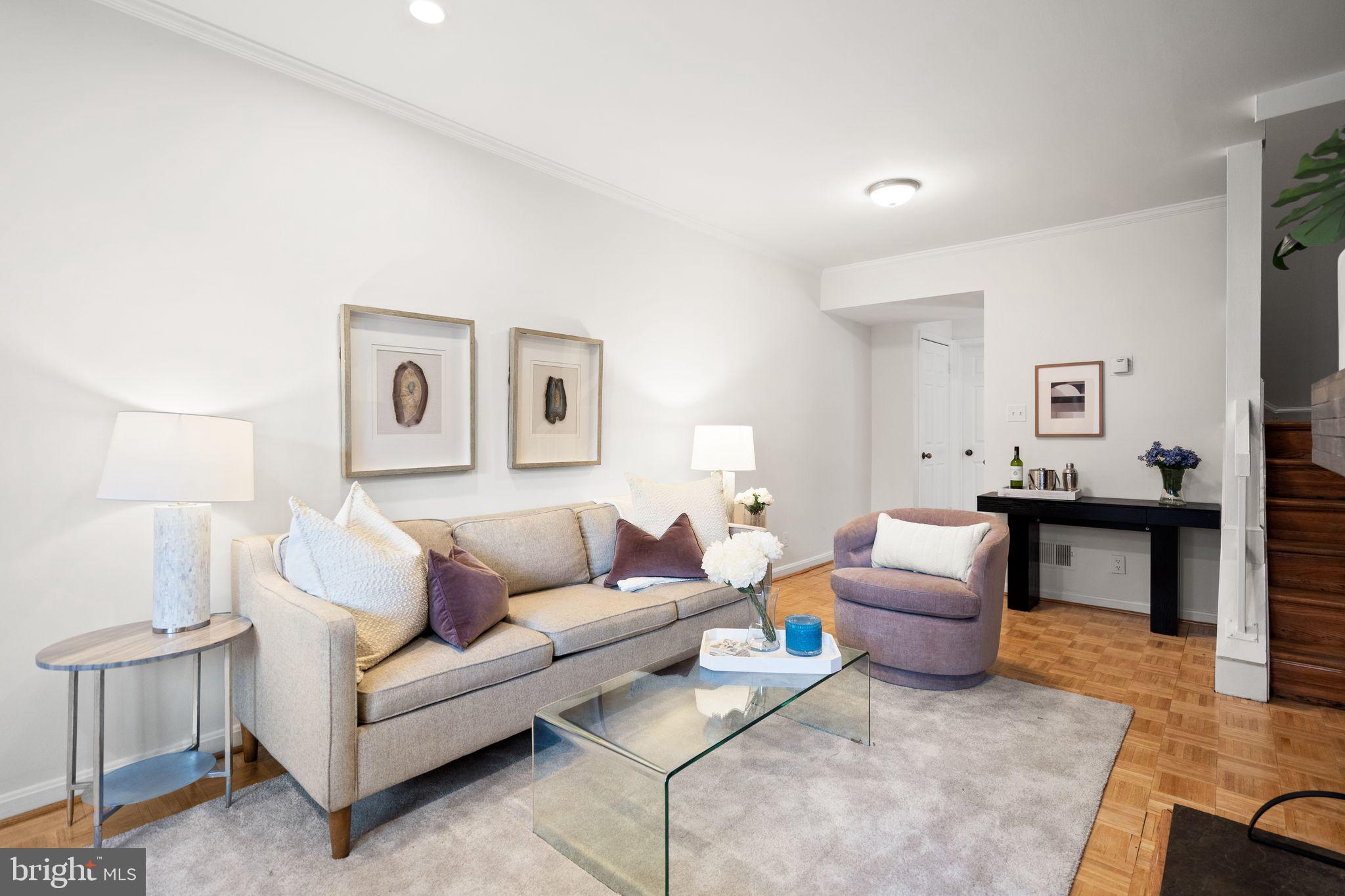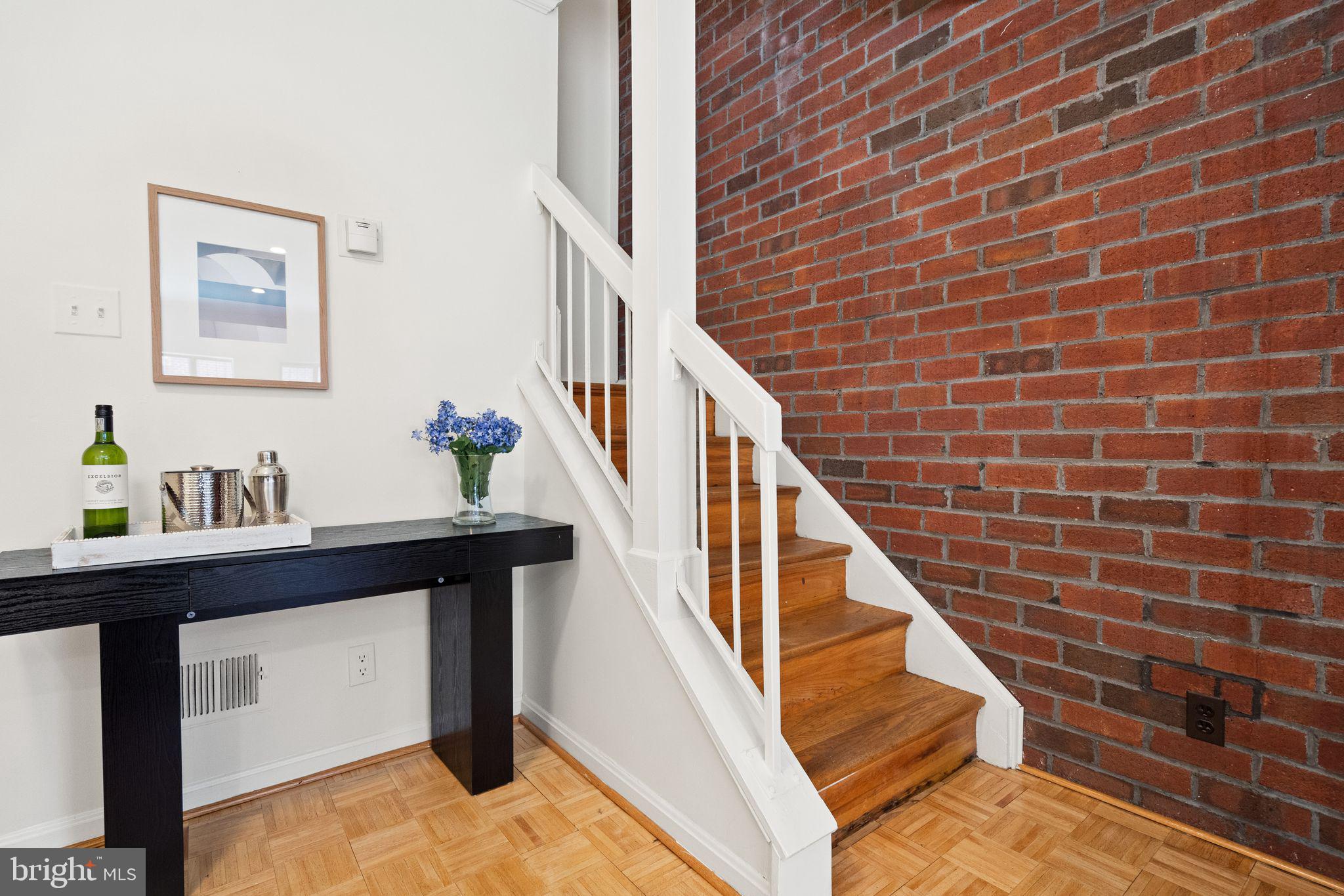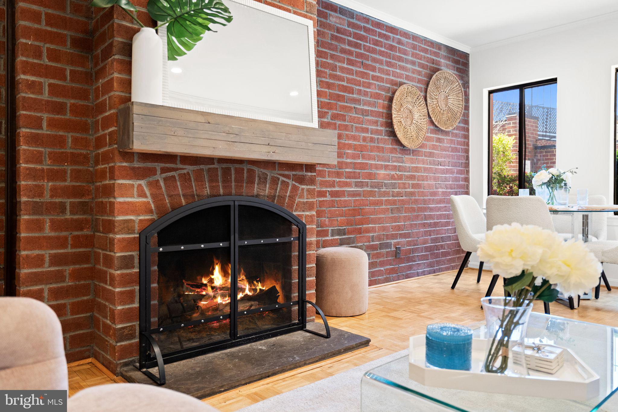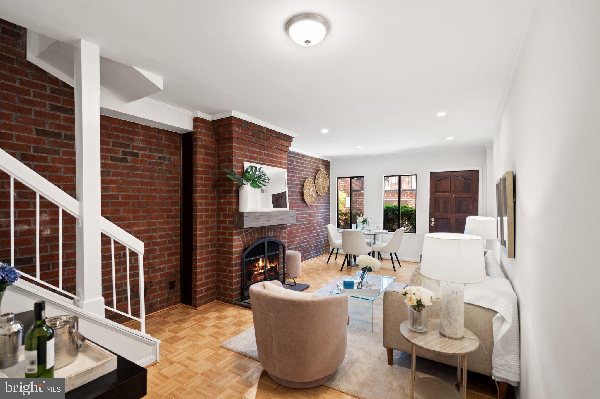 Introducing a charming townhouse-style condominium at the Papermill with garage parking, nestled in a tranquil gated neighborhood between the historic C&O Canal and Georgetown's picturesque waterfront park. This turnkey home provides numerous upgrades, including recessed lighting, fresh paint, refinished flooring, and modern finishes throughout. Step into the sun-filled kitchen featuring stainless steel appliances and immediate private patio access, perfect for outdoor entertaining. The spacious living room boasts hardwood floors, complemented by an exposed brick wall and wood-burning fireplace, creating a relaxing ambiance. Upstairs you'll find a modernized bathroom with glass enclosed shower and two bedrooms with ample storage space and serene neighborhood views. Additionally, the oversized attic provides generous storage. Reserved garage parking and in-unit washer dryer convey. Ideally situated directly across from the on-site pool, the Papermill is a tree-lined pet-friendly association with low fees and no history of assessments. The location is second to none, in the heart of Georgetown with all of the area's esteemed shopping and dining venues right outside the front door.