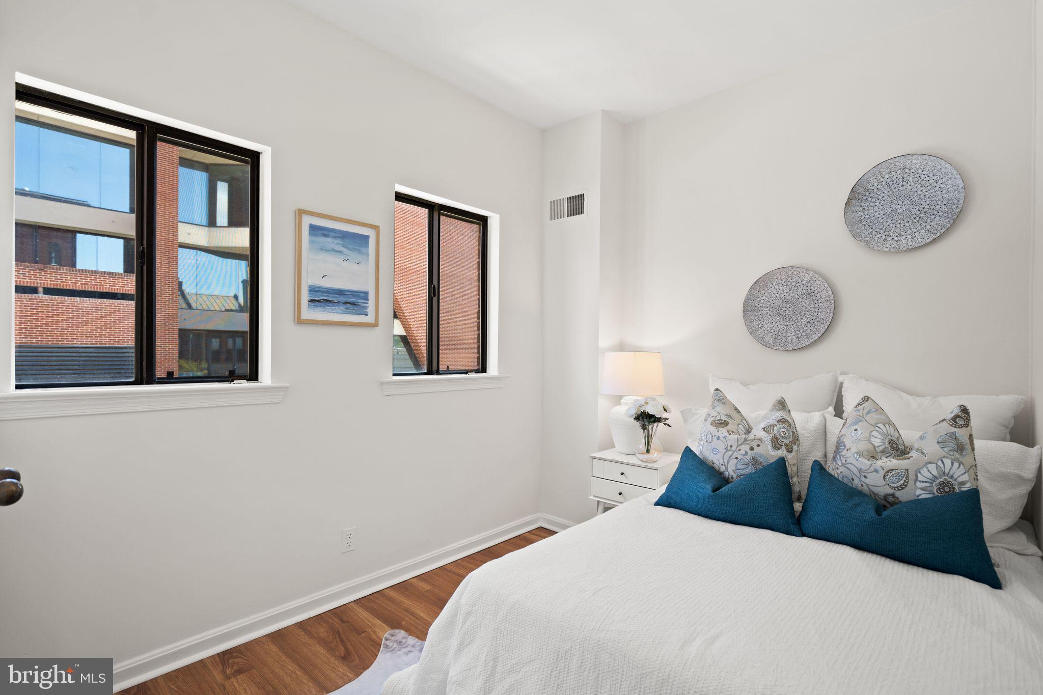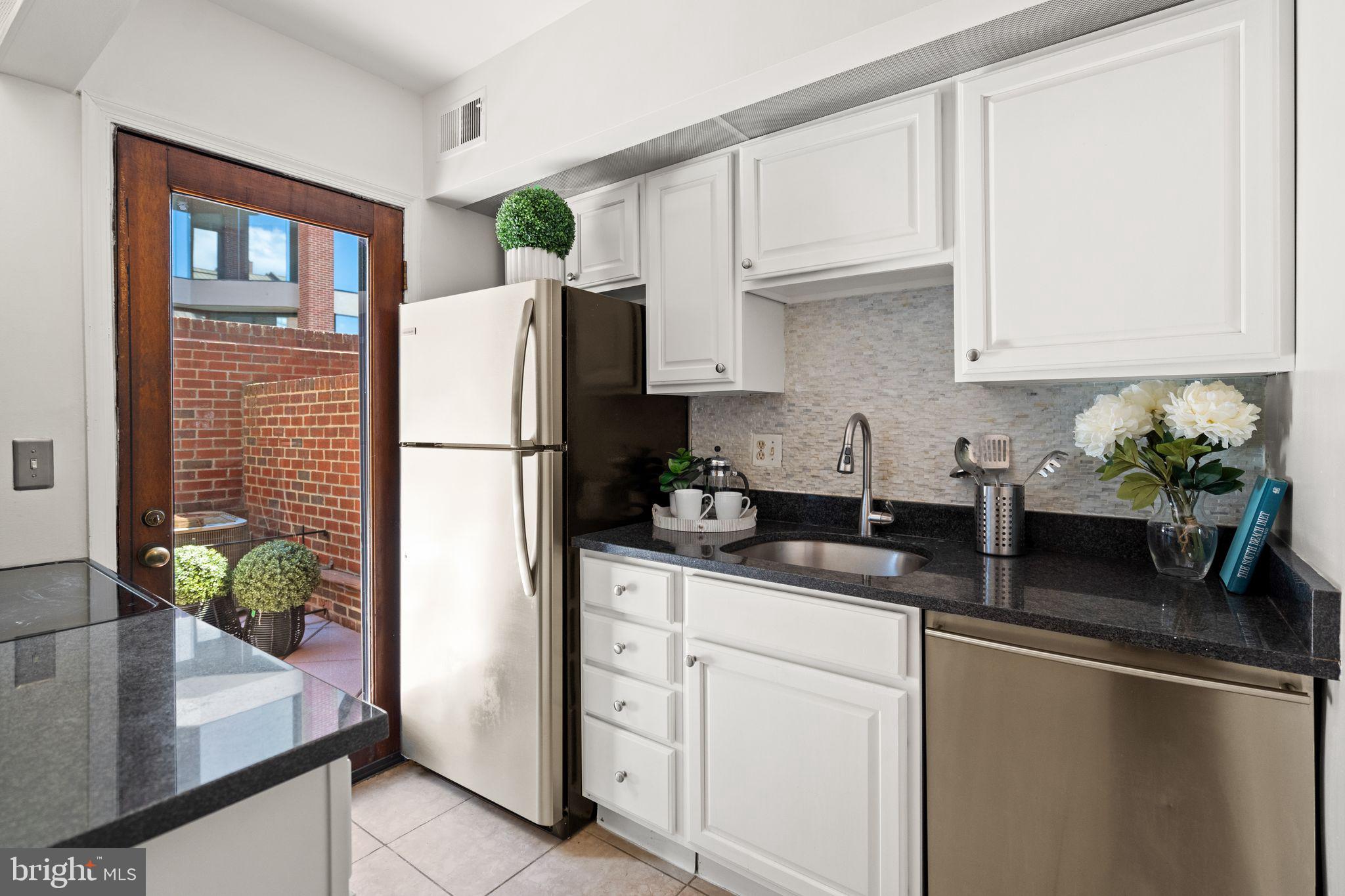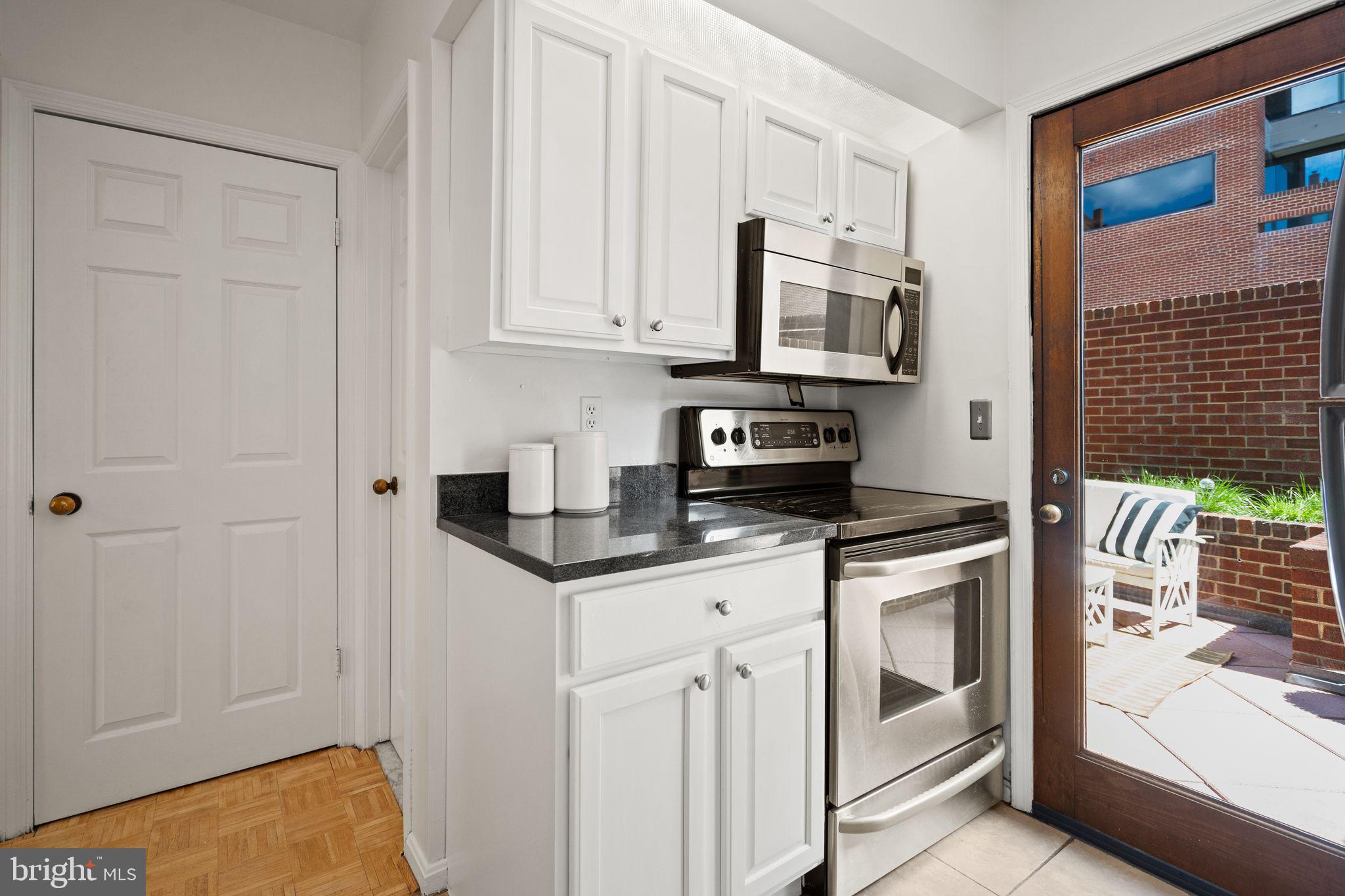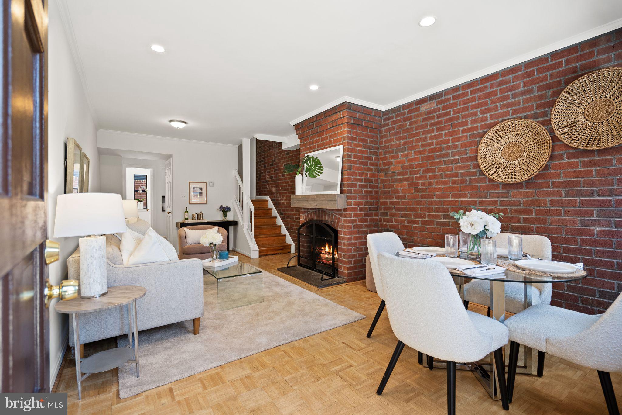 Introducing a charming townhouse-style condominium at the Papermill with garage parking, nestled in a tranquil gated neighborhood between the historic C&O Canal and Georgetown's picturesque waterfront park. This turnkey home provides numerous upgrades, including recessed lighting, fresh paint, refinished flooring, and modern finishes throughout. Step into the sun-filled kitchen featuring stainless steel appliances and immediate private patio access, perfect for outdoor entertaining. The spacious living room boasts hardwood floors, complemented by an exposed brick wall and wood-burning fireplace, creating a relaxing ambiance. Upstairs you'll find a modernized bathroom with glass enclosed shower and two bedrooms with ample storage space and serene neighborhood views. Additionally, the oversized attic provides generous storage. Reserved garage parking and in-unit washer dryer convey. Ideally situated directly across from the on-site pool, the Papermill is a tree-lined pet-friendly association with low fees and no history of assessments. The location is second to none, in the heart of Georgetown with all of the area's esteemed shopping and dining venues right outside the front door.