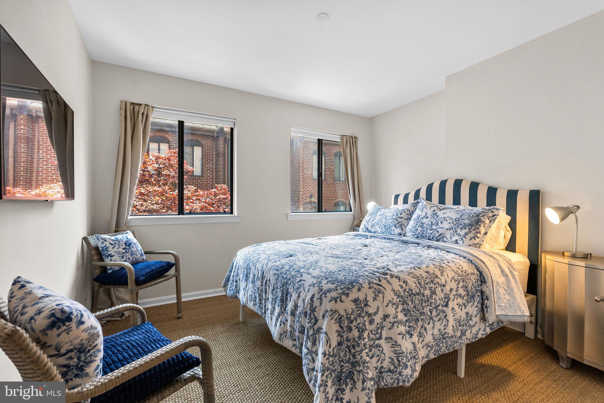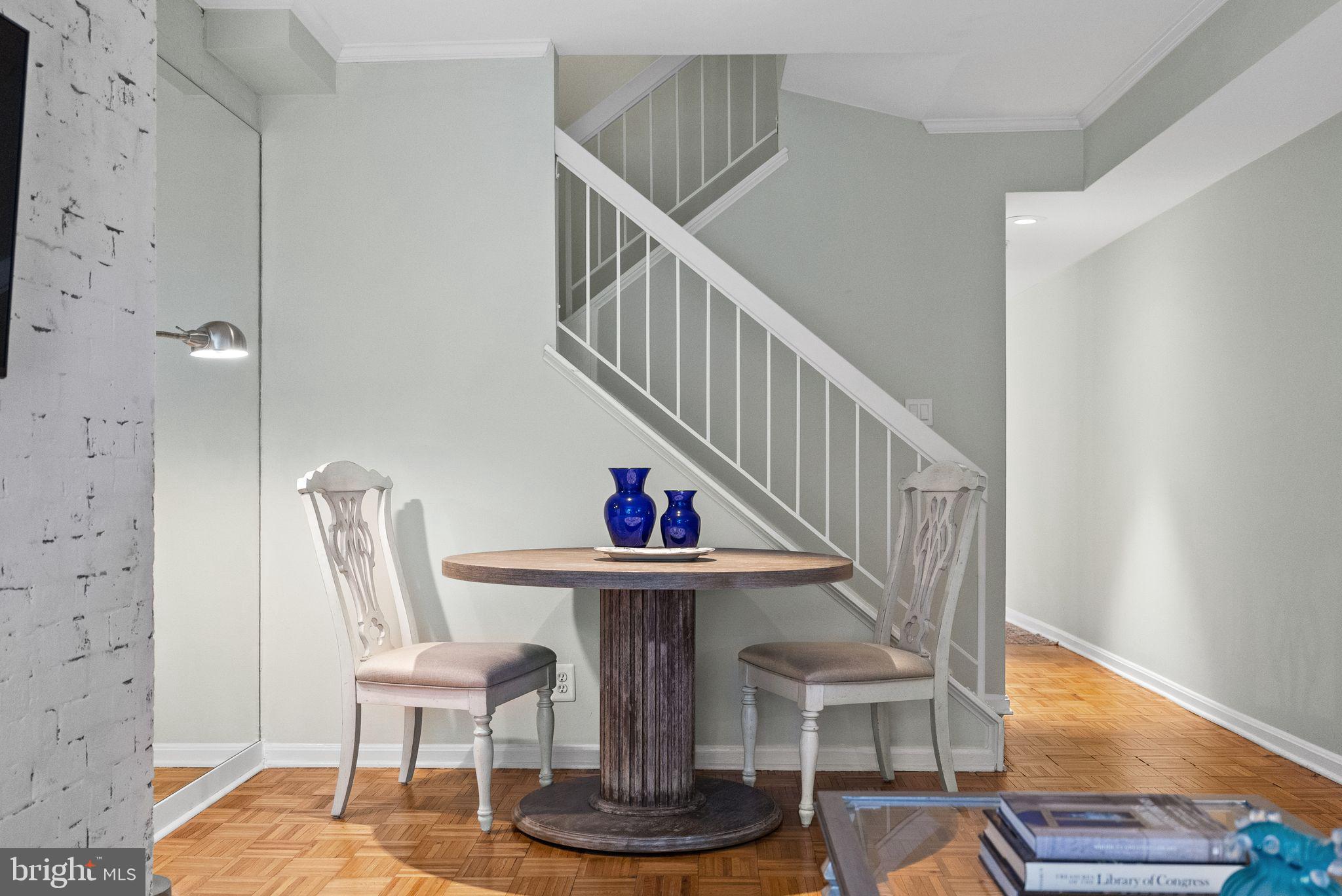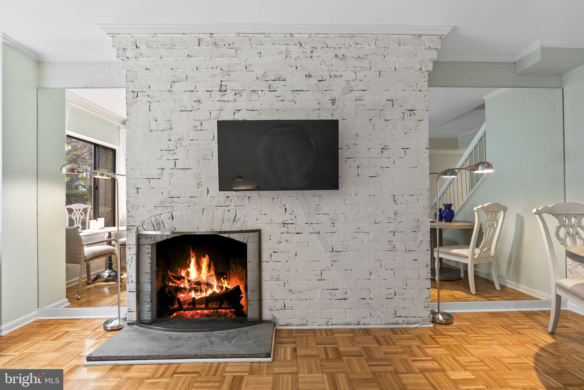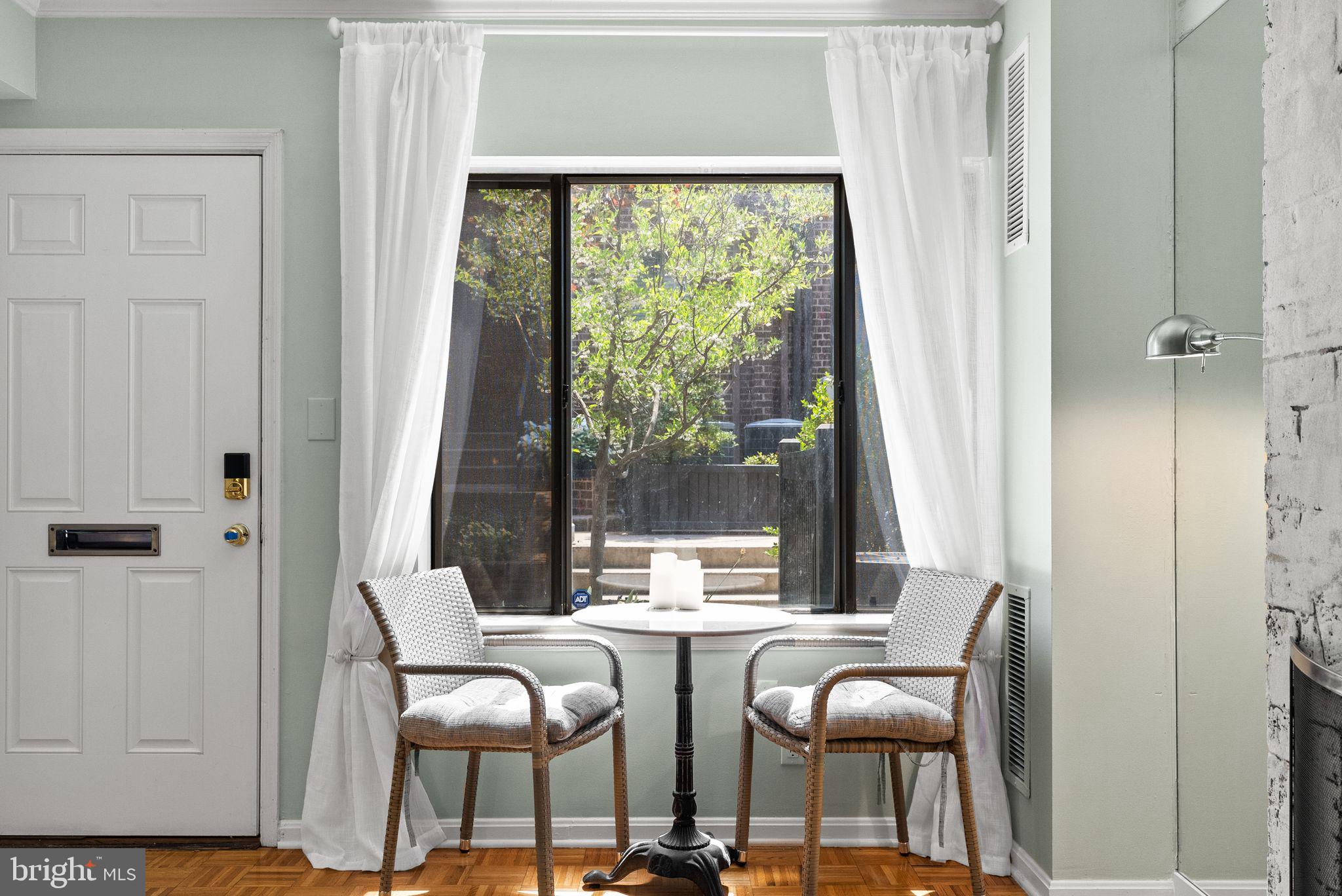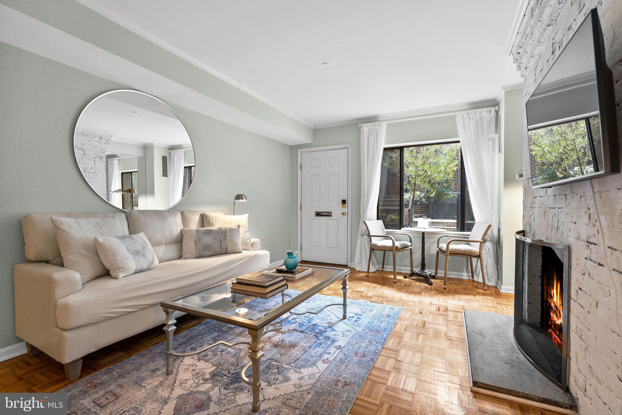 Welcome to 1047 Paper Mill Court NW, a charming townhouse-style condo tucked inside the peaceful, gated community of Papermill Court. Framed by a sweet front flower bed, enjoyable from a sunny morning bistro table, this home offers a warm and inviting first impression. Inside, the home features a spacious, easy flow with beautiful natural light that reflects effortlessly throughout. The bright living room showcases original hardwood floors, a white-washed brick accent wall, and a wood-burning fireplace that adds both character and comfort. The eat-in kitchen is thoughtfully designed with a skylight overhead and generous storage, creating an airy and functional space. A versatile bonus room on the main level includes a recently added powder room with a stackable washer/dryer, plus additional flexible space for use as a home office, walk-in pantry, or additional storage. Bathrooms on both levels add convenience and livability. Upstairs, two well-proportioned bedrooms are complemented by a renovated bathroom featuring elegant marble finishes. Reserved garage parking conveys. Papermill Court is a lush, pet-friendly community with security and a seasonal pool, known for its exceptionally well-managed association, low and consistent fees, and no history of special assessments--an uncommon advantage in Georgetown. All of this, just moments from the vibrant shopping, dining, and charm of Georgetown right outside your door.