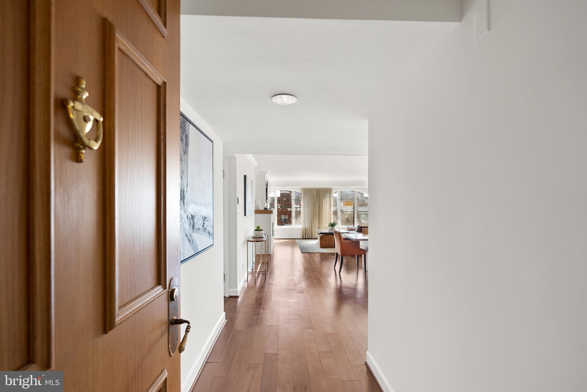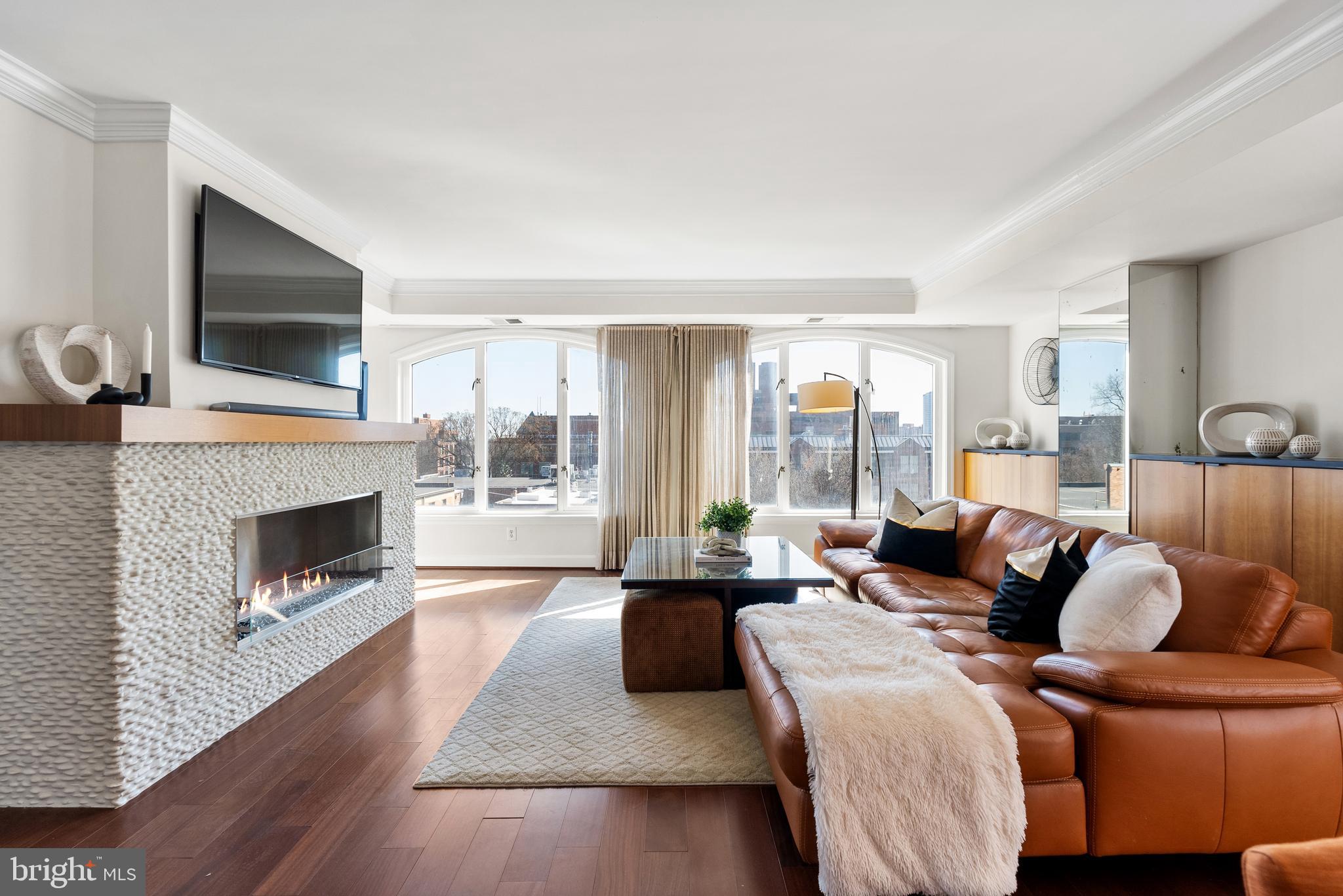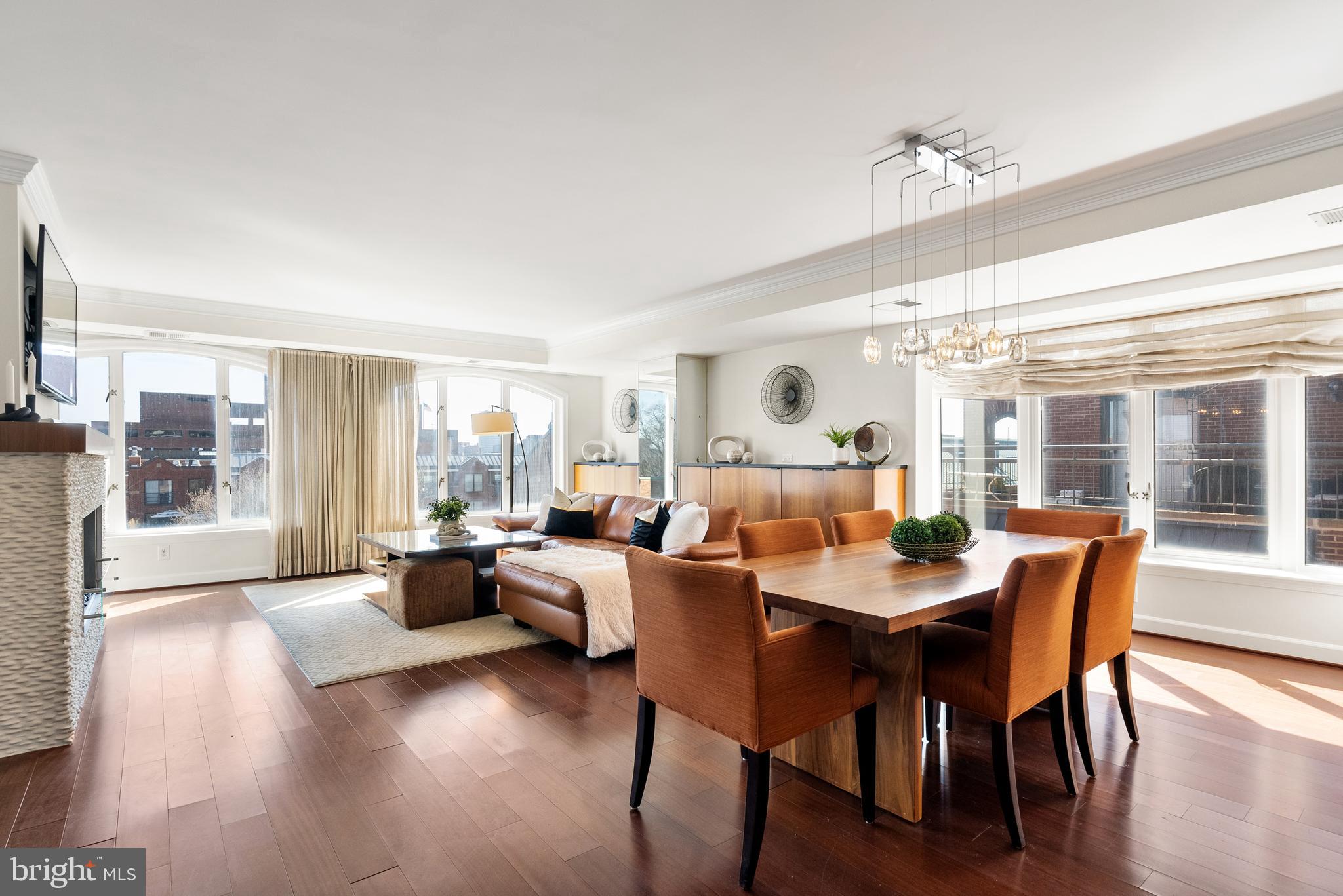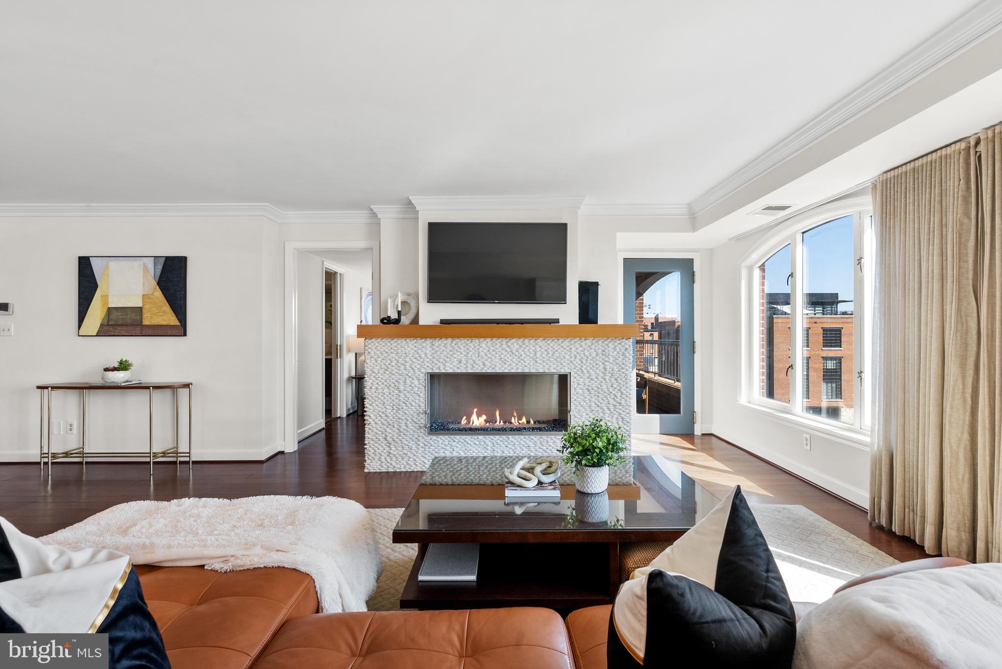 Discover this exceptional corner residence at Georgetown Park, offering breathtaking panoramic views of the historic Chesapeake & Ohio Canal, the Rosslyn skyline, and Wisconsin Avenue. Bathed in natural sunlight from three exposures, this unit features elegant hardwood floors, high ceilings, and sophisticated crown moldings. The open-concept living area boasts a cozy fireplace and an updated kitchen equipped with stainless steel appliances, ample cabinet space, and a wine cooler. The spacious primary bedroom includes a generous walk-in closet and a contemporary bathroom with a serene soaking tub. Enjoy unobstructed, sweeping city views from the private balcony, making this home a true urban sanctuary. Separately deeded on-site garage parking conveys. The Georgetown Park Residences are an amenity-rich condominium association located in the heart of Georgetown, just steps from the intersection of Wisconsin and M. All of the neighborhood's esteemed shopping and dining venues are right outside the front door.
