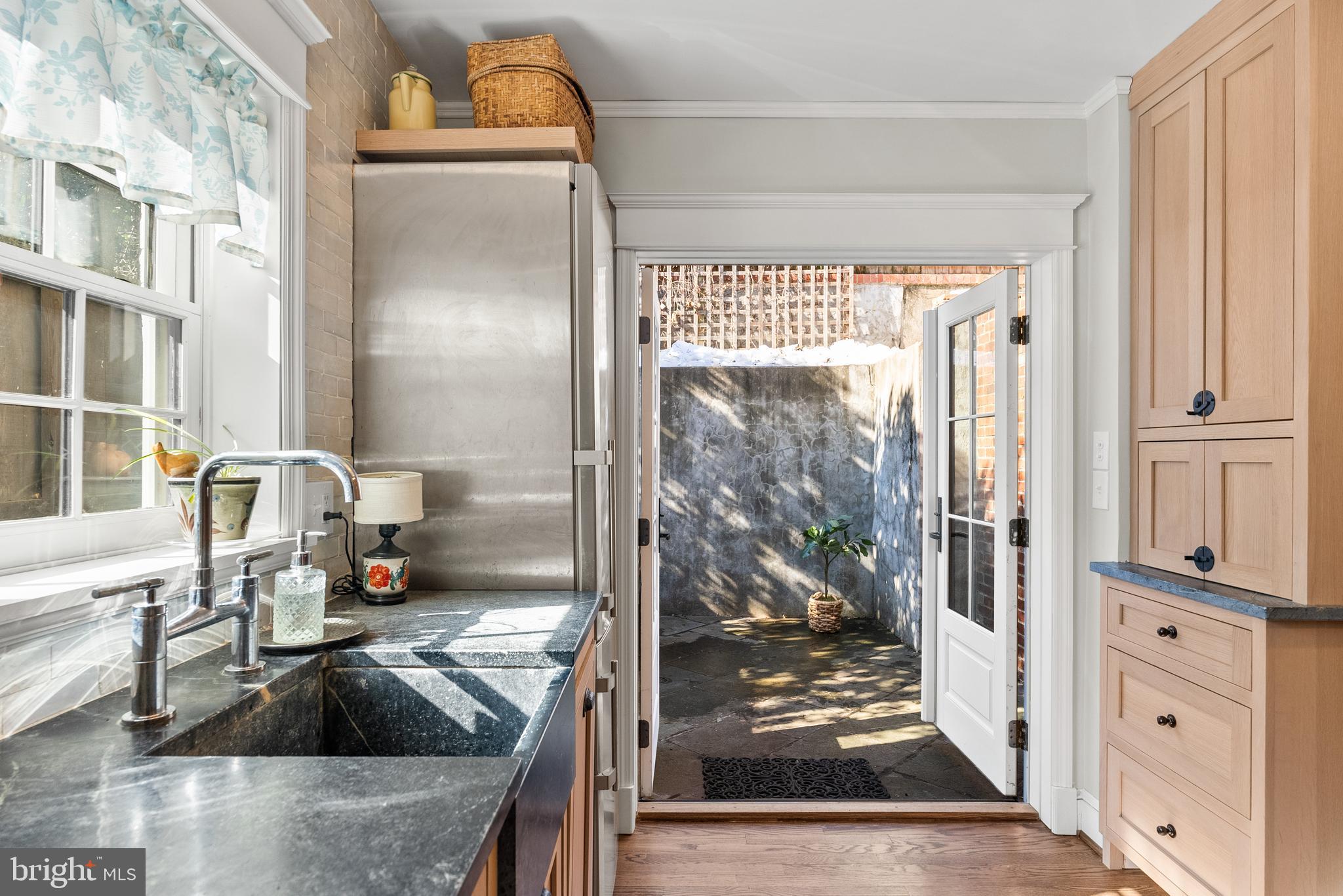 Perfectly positioned in Georgetown's coveted East Village directly across from Rose Park, this semi-detached Federal rowhome blends timeless charm with thoughtful modern updates. The classic all-brick facade opens to a beautifully renovated interior featuring exposed brick, gleaming hardwood floors, elegant inset paneling, soaring ceilings, and a wood-burning fireplace that anchors the inviting living space. The fully renovated kitchen and bath showcase sophisticated marble finishes, high-end appliances, and abundant natural light, creating a seamless balance of style and functionality. Every detail has been curated to honor the home's historic character while offering today's modern comforts. A private rear patio provides a serene outdoor retreat -- ideal for morning coffee, alfresco dining, or entertaining under the stars. Situated just steps from Rose Park's tennis courts, playgrounds, and seasonal farmers' market, this exceptional residence also offers easy access to Dupont Circle, Foggy Bottom, and the very best of Georgetown living.