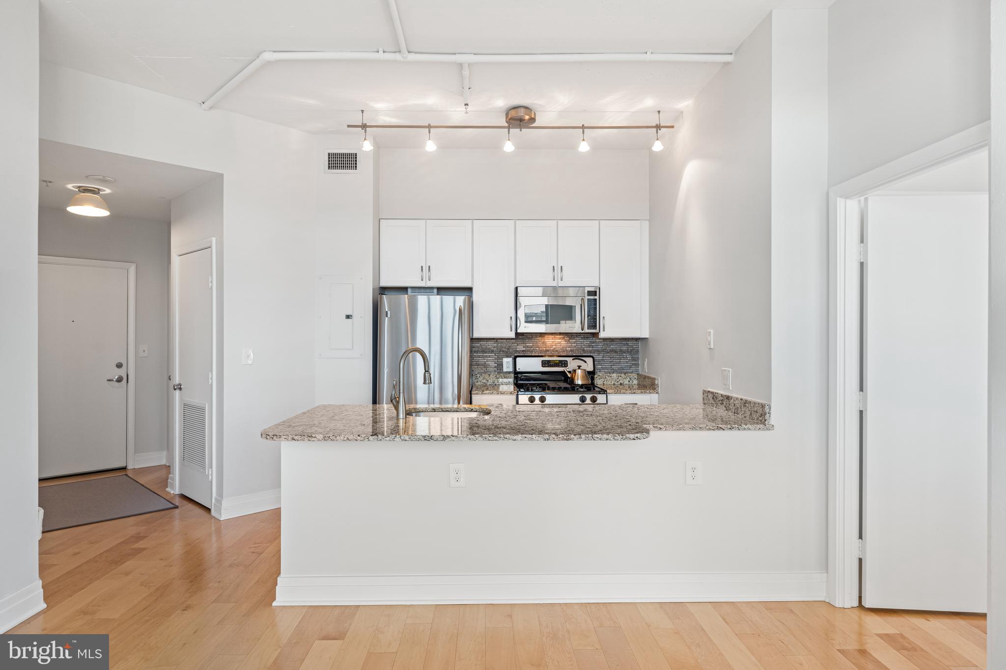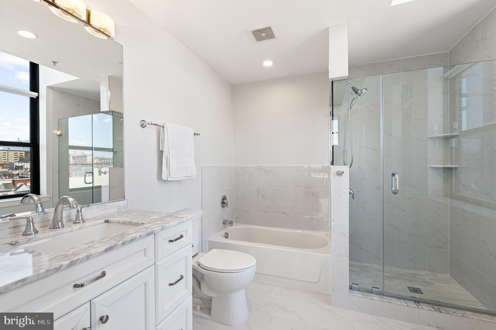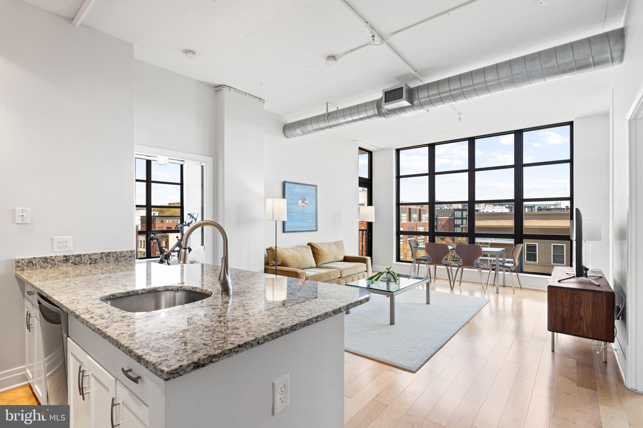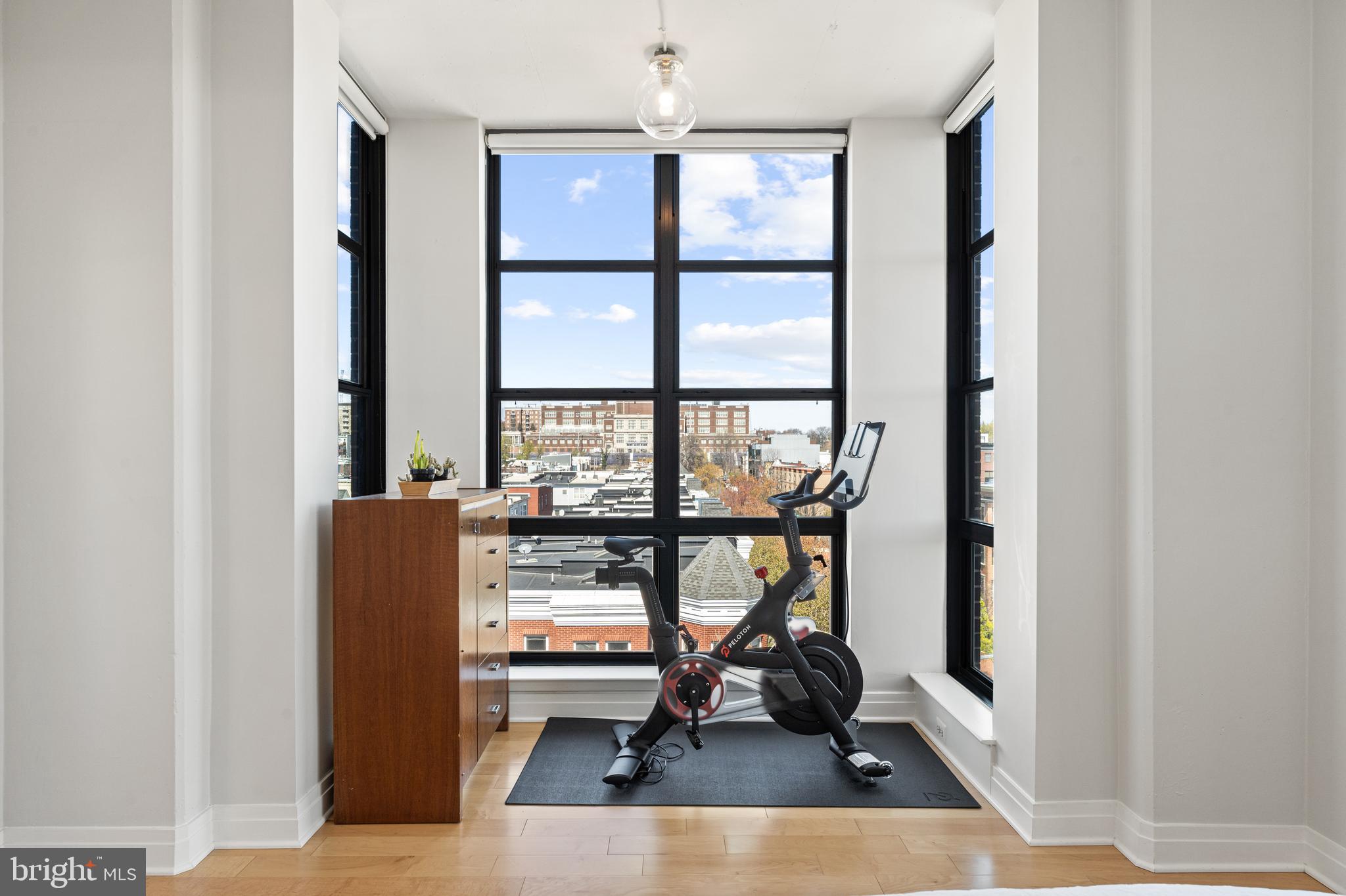 This turnkey residence at 2020 Lofts provides an open-concept interior layout, enhanced by floor-to-ceiling windows that flood the space with natural light. Property features include hardwood floors, a gourmet kitchen with granite countertops and stainless steel appliances, spacious spa-like bathrooms, a private balcony with serene views, and abundant closet space. In-unit washer and dryer plus one garage parking space complete the offering. 2020 12th Street NW is a full-service building with a concierge, on-site gym, community room, and rooftop deck with sweeping city views. The monthly condo fee includes water, cable, and high-speed internet. Ideally located just off U Street and a few blocks from the vibrant 14th Street, where the shopping, dining, and nightlife venues are endless.
