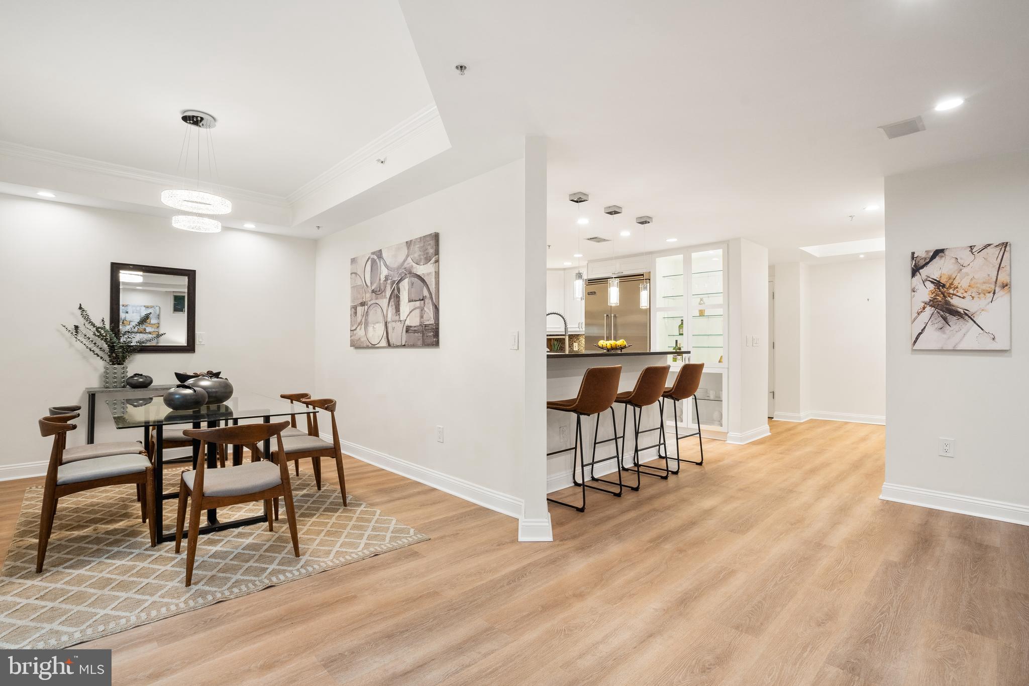 Discover this fully renovated Unit #2 at Georgetown Heights, a distinguished residence nestled in a prime location. This expansive property boasts high ceilings, sophisticated moldings, elegant light fixtures, and premium finishes throughout. Highlights include newly installed light hardwood floors, a double-sided gas fireplace, a state-of-the-art kitchen with high-end appliances, and a private patio. The primary suite is a sanctuary with its walk-in closet and an oversized, opulent bathroom featuring a dual vanity, a soaking tub, an all-glass shower, and ample storage. This offering also includes two garage parking spaces and additional storage. Located at 2501 Wisconsin Avenue NW, this full-service building provides residents with amenities such as a front desk, a lush courtyard, and a breathtaking rooftop terrace. This prestigious address offers immediate access to the vibrant offerings of Glover Park and Georgetown. Just outside your door, you'll find convenient access to Whole Foods, the Guy Mason playground and recreation center, Trader Joe's, the Michelin-starred restaurant Xiquet, Ace Hardware, and the Washington National Cathedral.