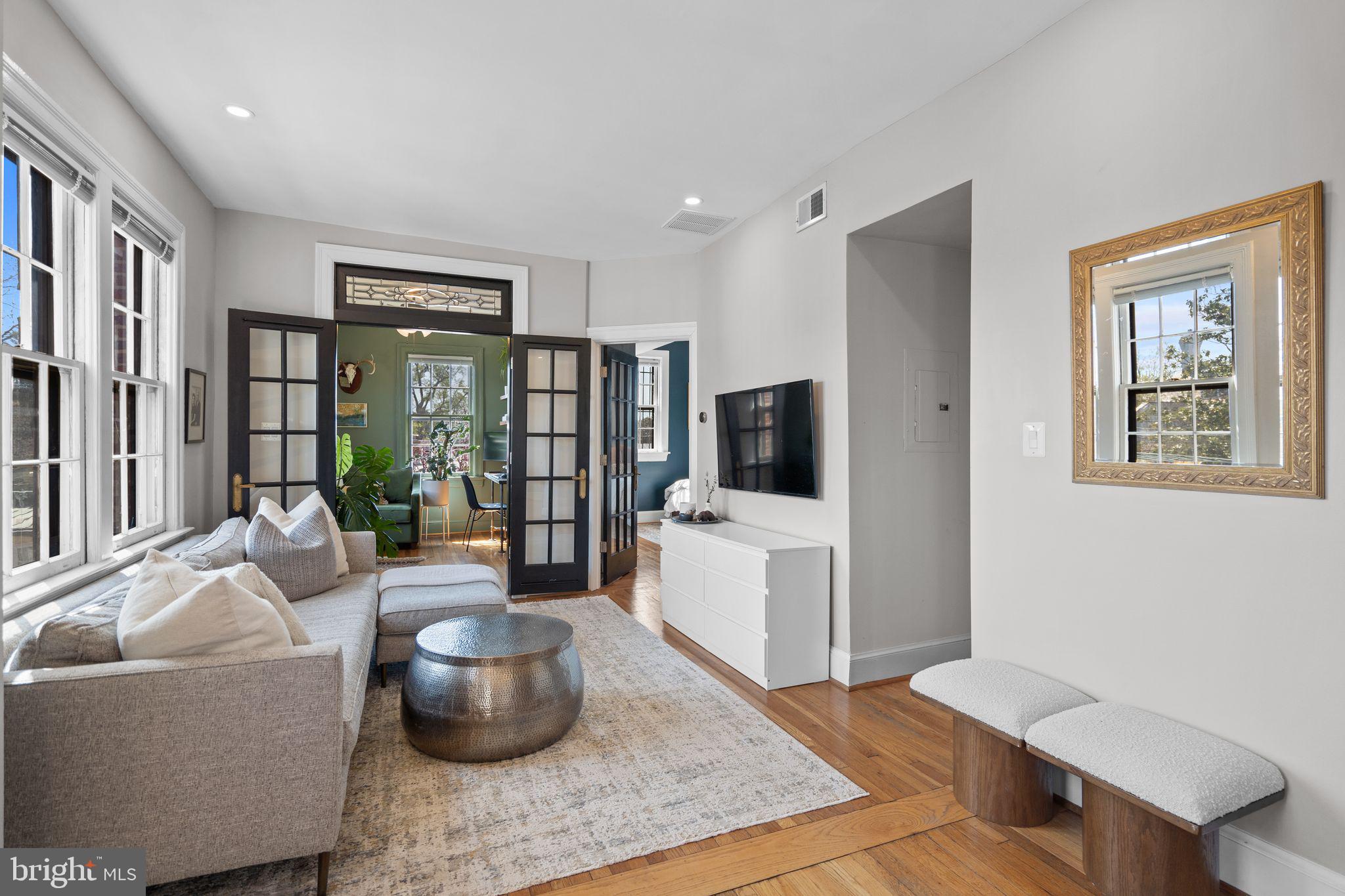 Sun-drenched corner residence at The Dumbarton, perfectly positioned in the heart of Georgetown directly across from Dumbarton Oaks. This top-floor unit showcases tall ceilings and an open-concept layout, enhanced by dual eastern and southern exposures that flood the space with natural light and tranquil views. Notable features include original hardwood flooring, a skylight, recessed lighting, and a fully renovated primary bathroom with sleek, contemporary finishes. In-unit laundry and extra storage complete the offering. Located at 3120 R Street NW, this pet-friendly boutique building provides effortless access to Montrose Park, along with Georgetown's vibrant array of shops and dining destinations.