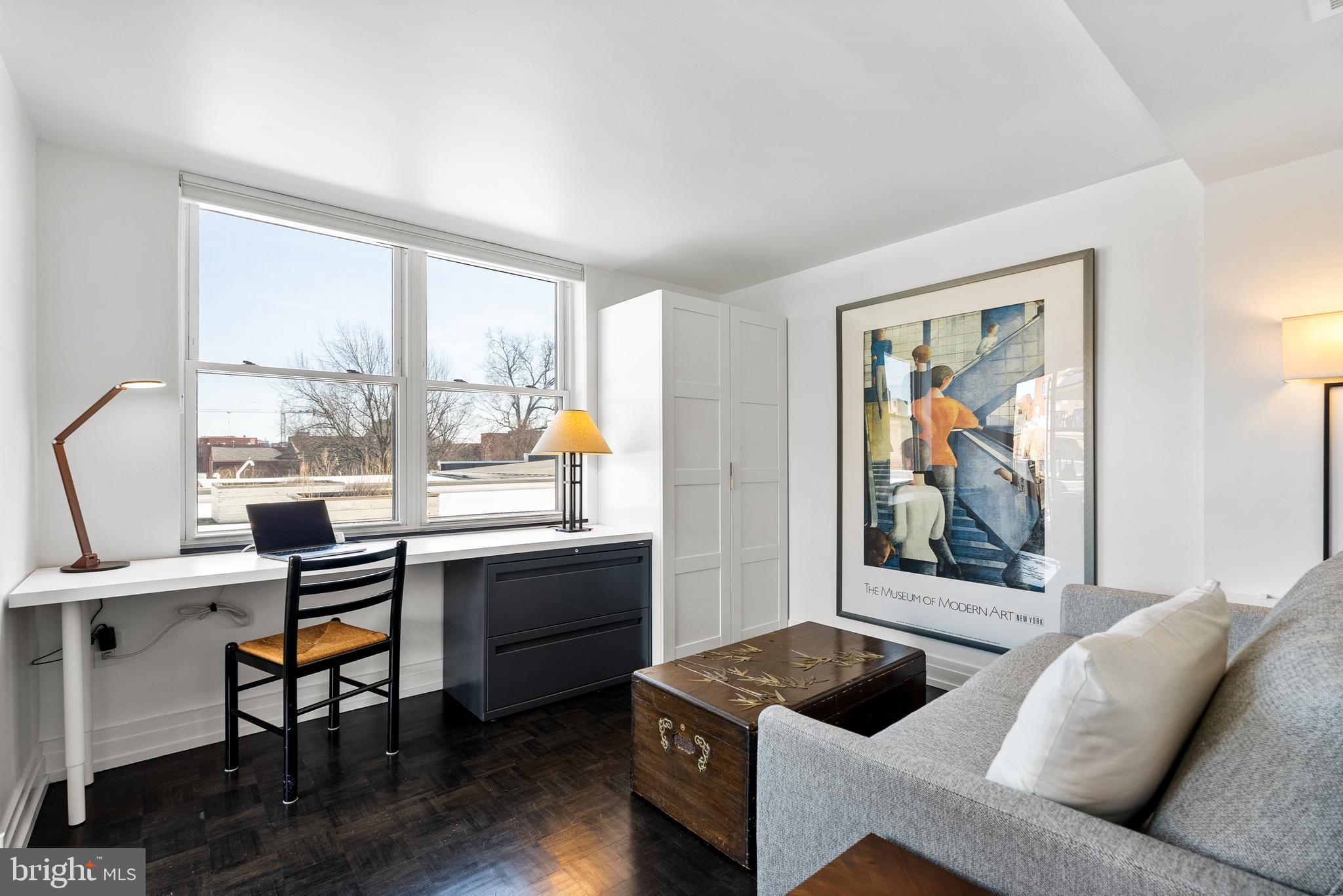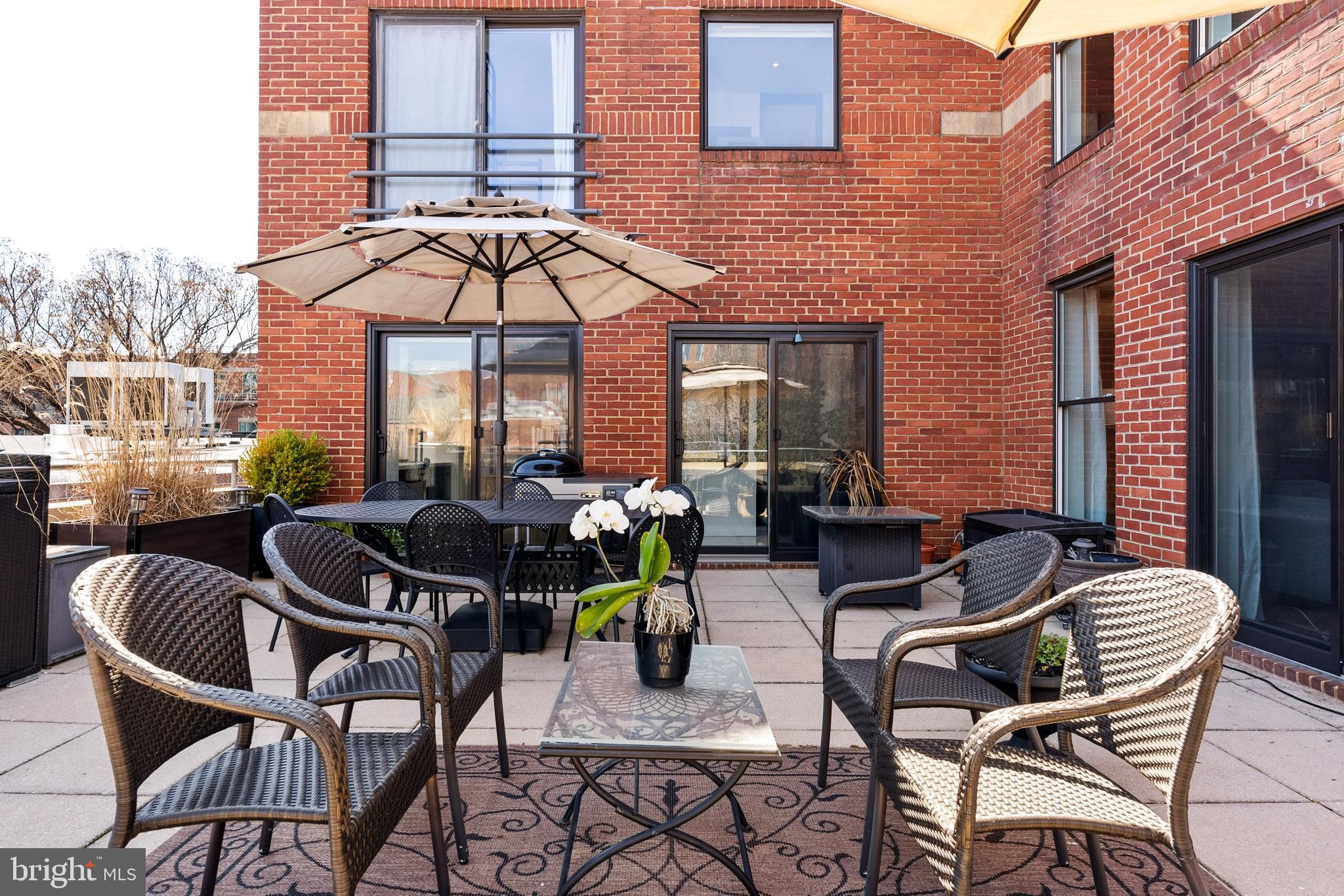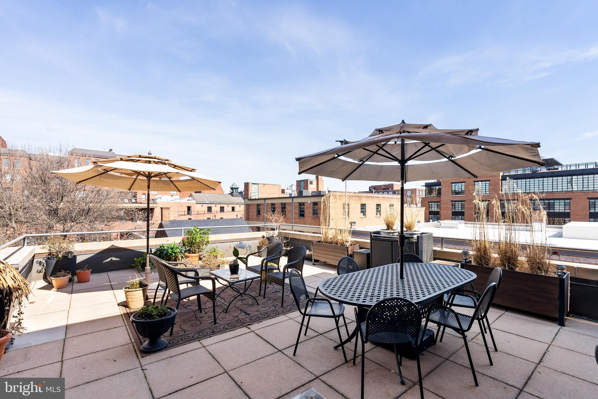 Step outside to the expansive private terrace, a 560 square foot oasis that provides visual privacy and is perfect for entertaining large groups while enjoying breathtaking views of Georgetown. The primary suite is a sanctuary in itself, featuring a massive sitting and dressing room with built-in closets, a sleek bathroom with a dual vanity and marble shower, and a private balcony.