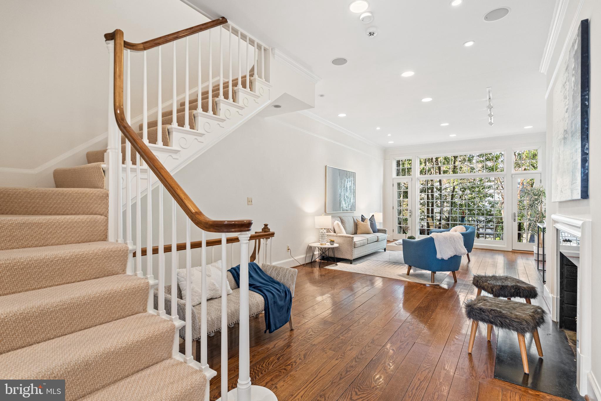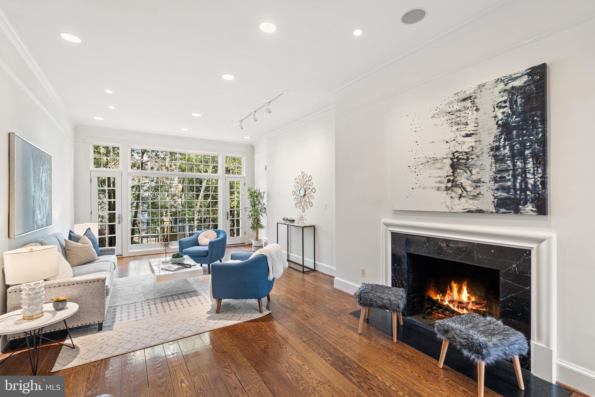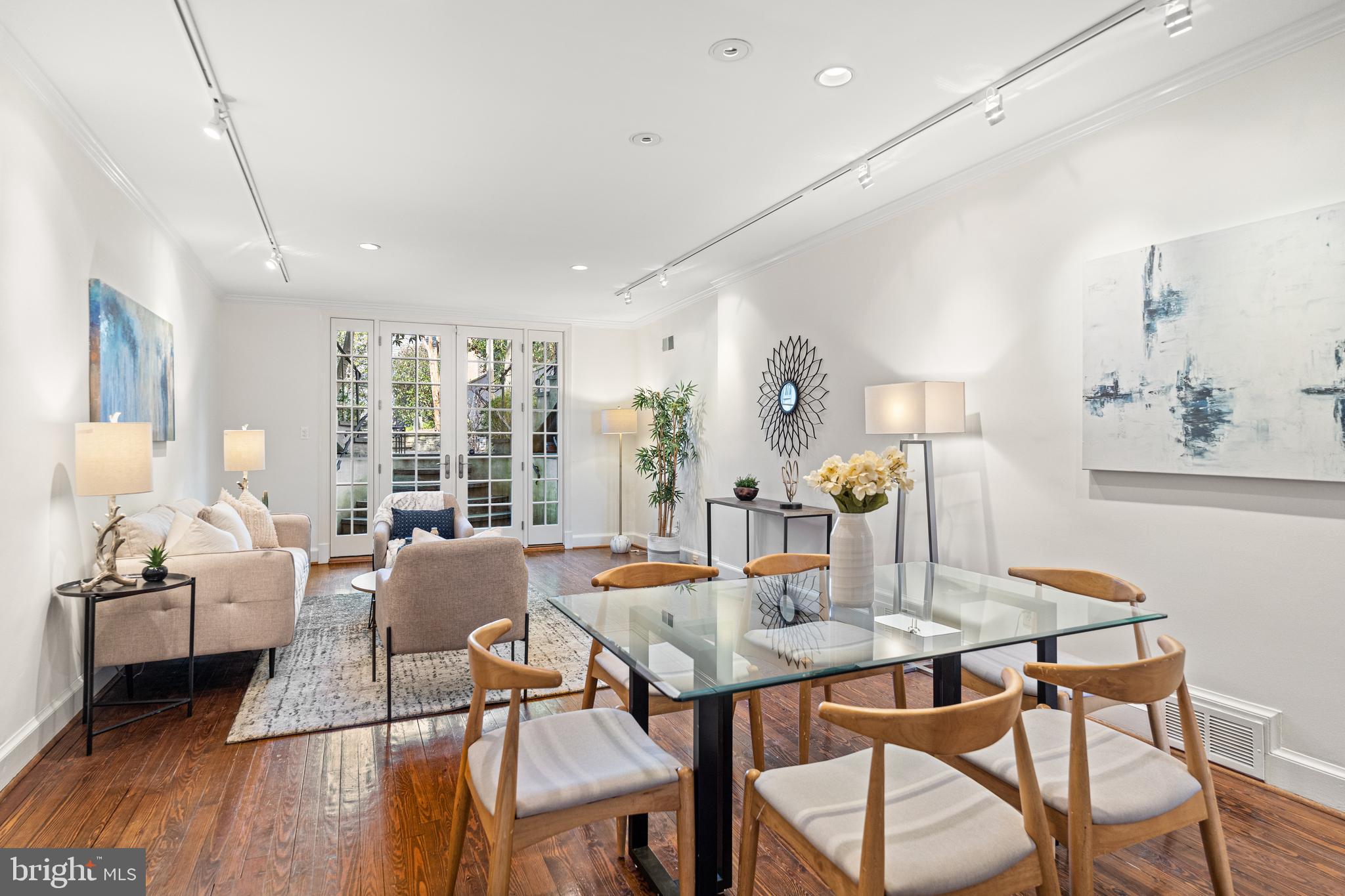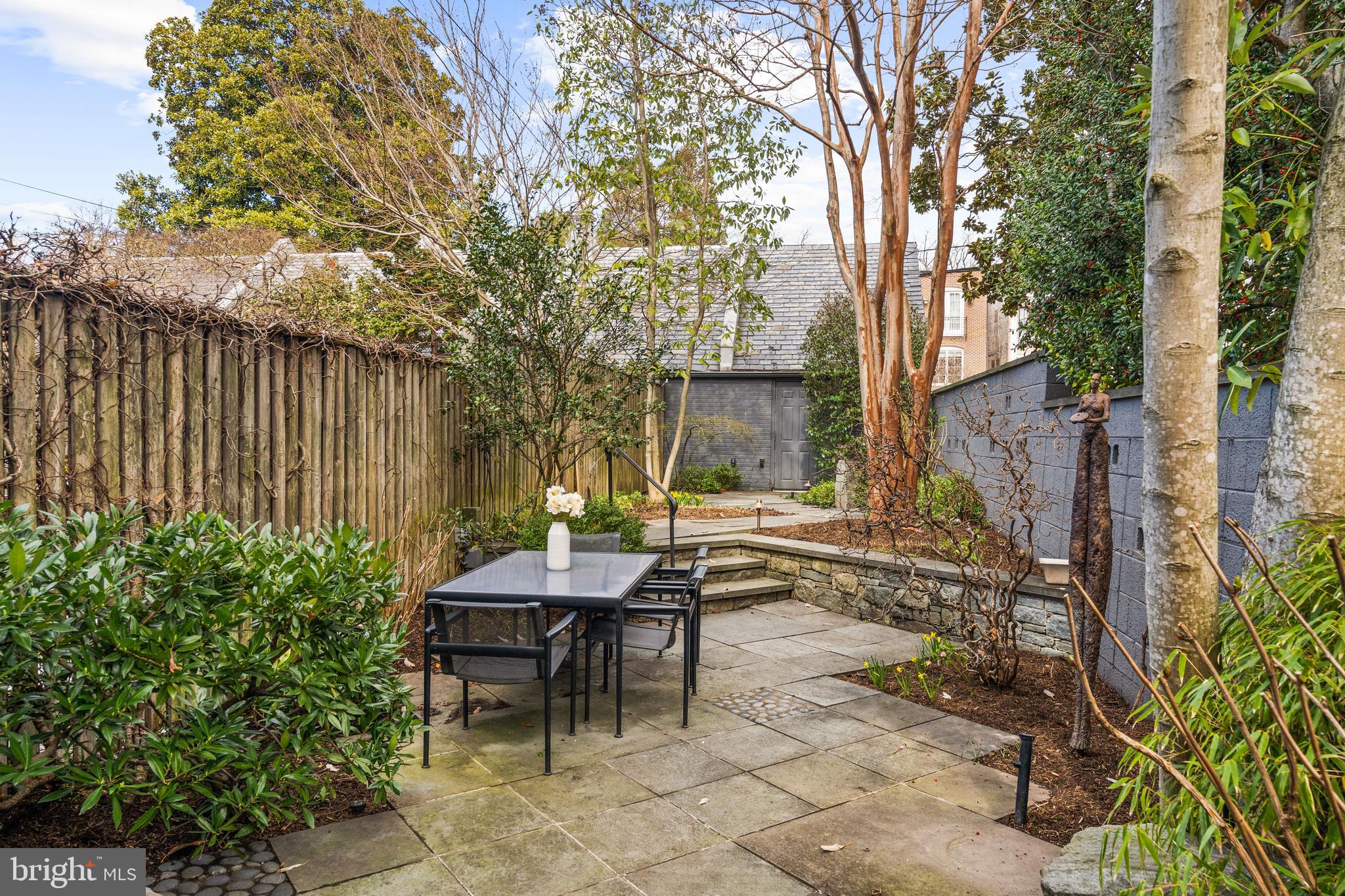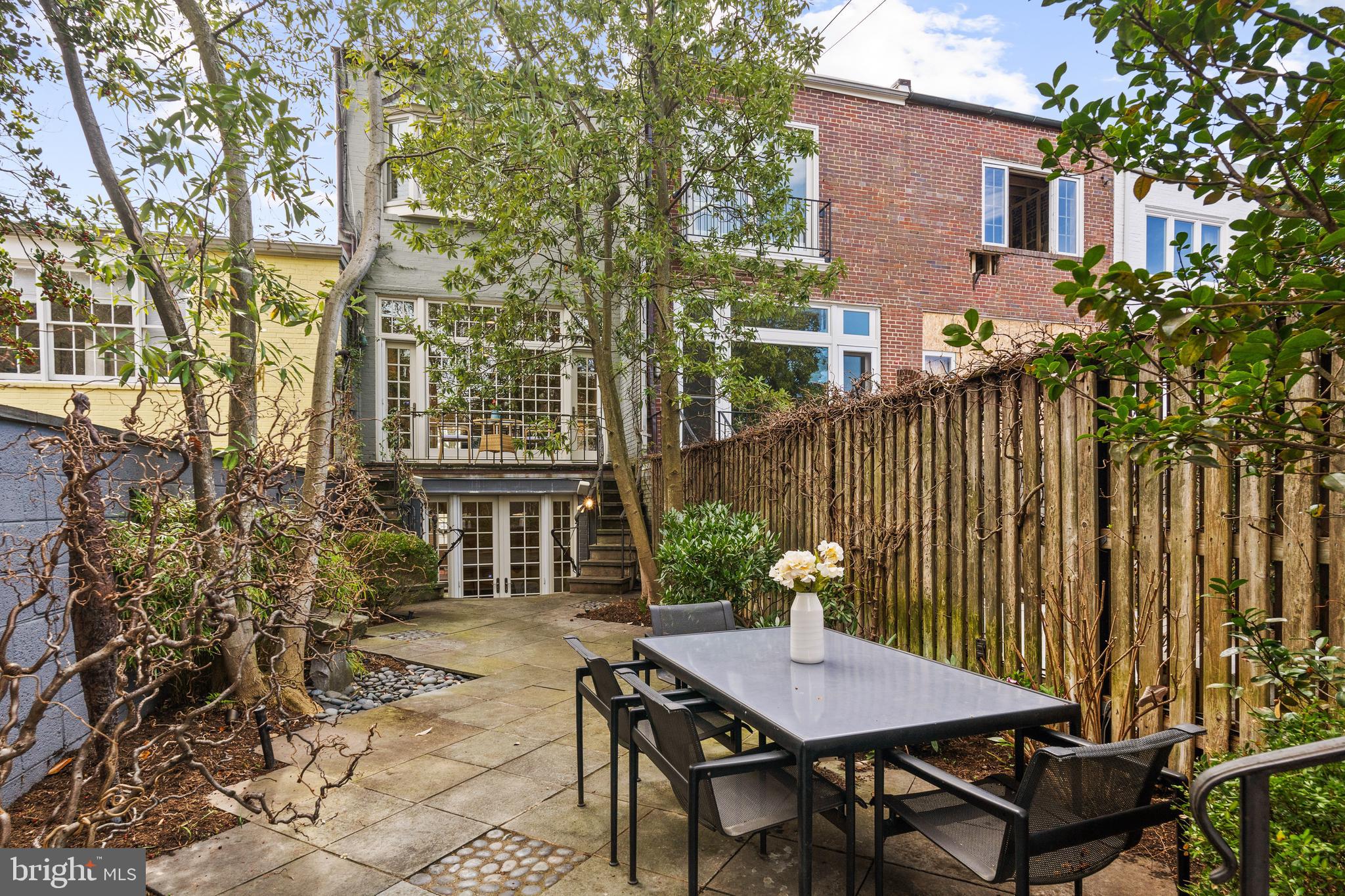 Built in 1942, this four-level Federal townhome in Georgetown's West Village offers abundant natural sunlight and pristine original period details combined with modern updates throughout. The main level affords a spacious dining and living room with immediate patio access plus an updated eat-in kitchen with heated floors and plentiful storage. Upstairs, the formal living room provides hardwood floors, soaring ceilings, recessed and track lighting, a wood-burning fireplace, and floor to ceilings windows overlooking the rear garden. The fully-finished lower level offers a private front entrance, abundant storage and two gas fireplaces. Outside, the serene backyard affords a private garden oasis, designed by Guy Williams of DCA Landscape Architects. The outdoor sanctuary features abundant entertaining space across tiered flagstone, an underground sprinkler system and garden lights. Fresh paint throughout the home and a detached garage completes the offering. 3317 Dent Place NW is located just a short walk from Volta Park, Wisconsin Avenue, M Street and countless shopping and dining venues.