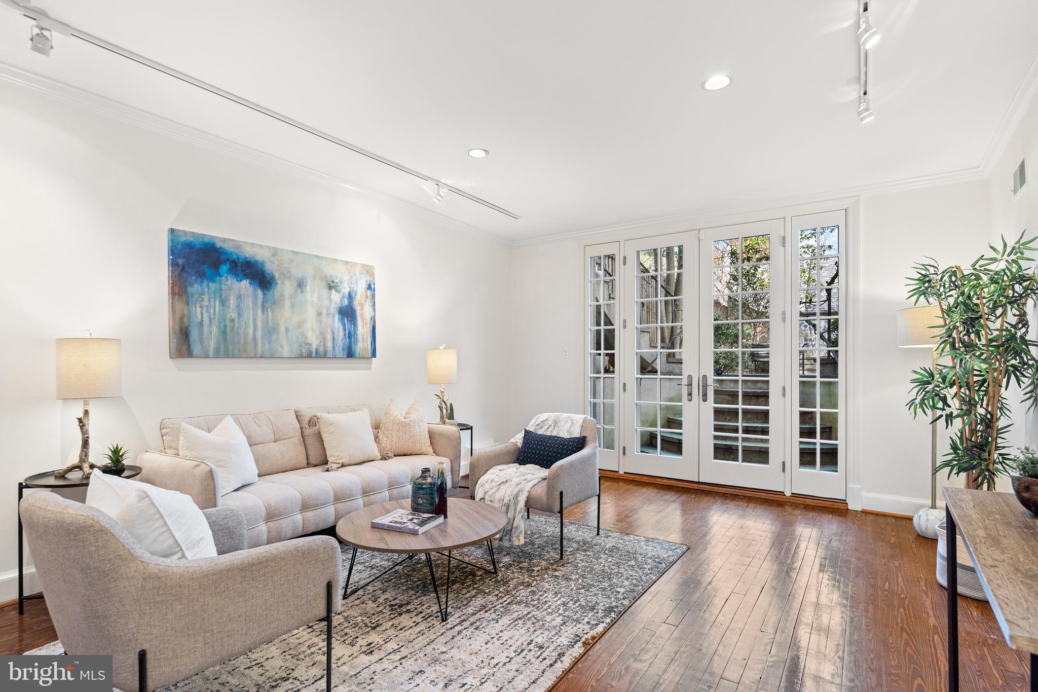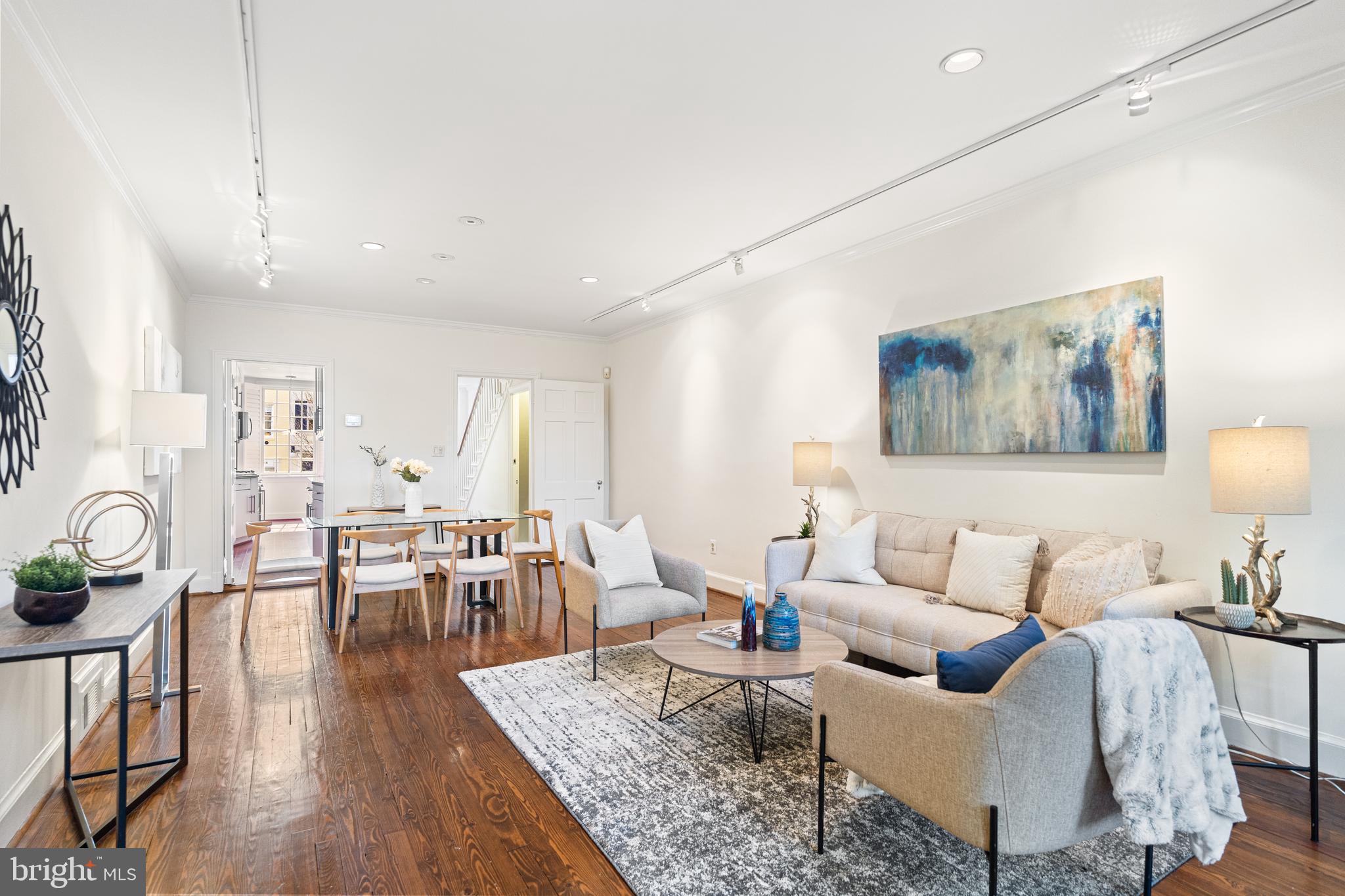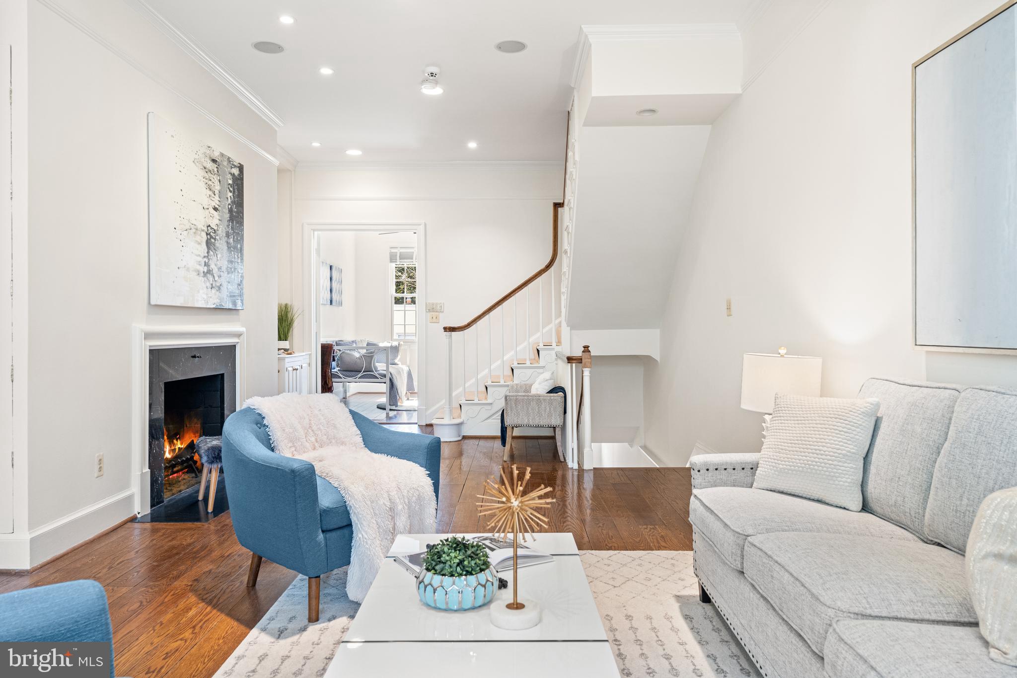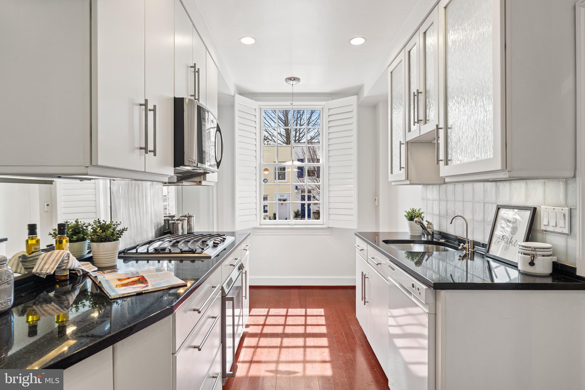 Built in 1942, this four-level Federal townhome in Georgetown's West Village offers abundant natural sunlight and pristine original period details combined with modern updates throughout. The main level affords a spacious dining and living room with immediate patio access plus an updated eat-in kitchen with heated floors and plentiful storage. Upstairs, the formal living room provides hardwood floors, soaring ceilings, recessed and track lighting, a wood-burning fireplace, and floor to ceilings windows overlooking the rear garden. The fully-finished lower level offers a private front entrance, abundant storage and two gas fireplaces. Outside, the serene backyard affords a private garden oasis, designed by Guy Williams of DCA Landscape Architects. The outdoor sanctuary features abundant entertaining space across tiered flagstone, an underground sprinkler system and garden lights. Fresh paint throughout the home and a detached garage completes the offering. 3317 Dent Place NW is located just a short walk from Volta Park, Wisconsin Avenue, M Street and countless shopping and dining venues.