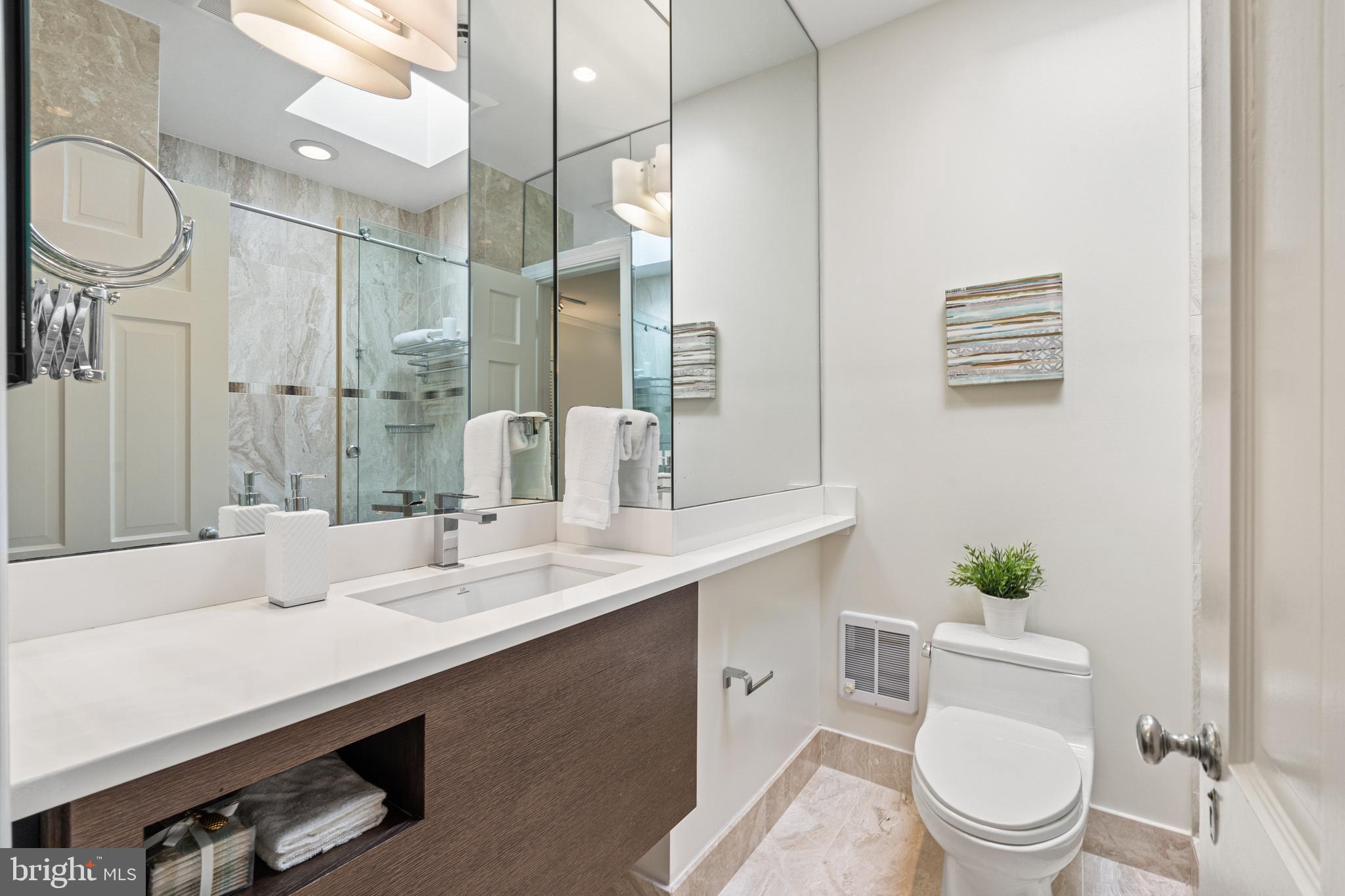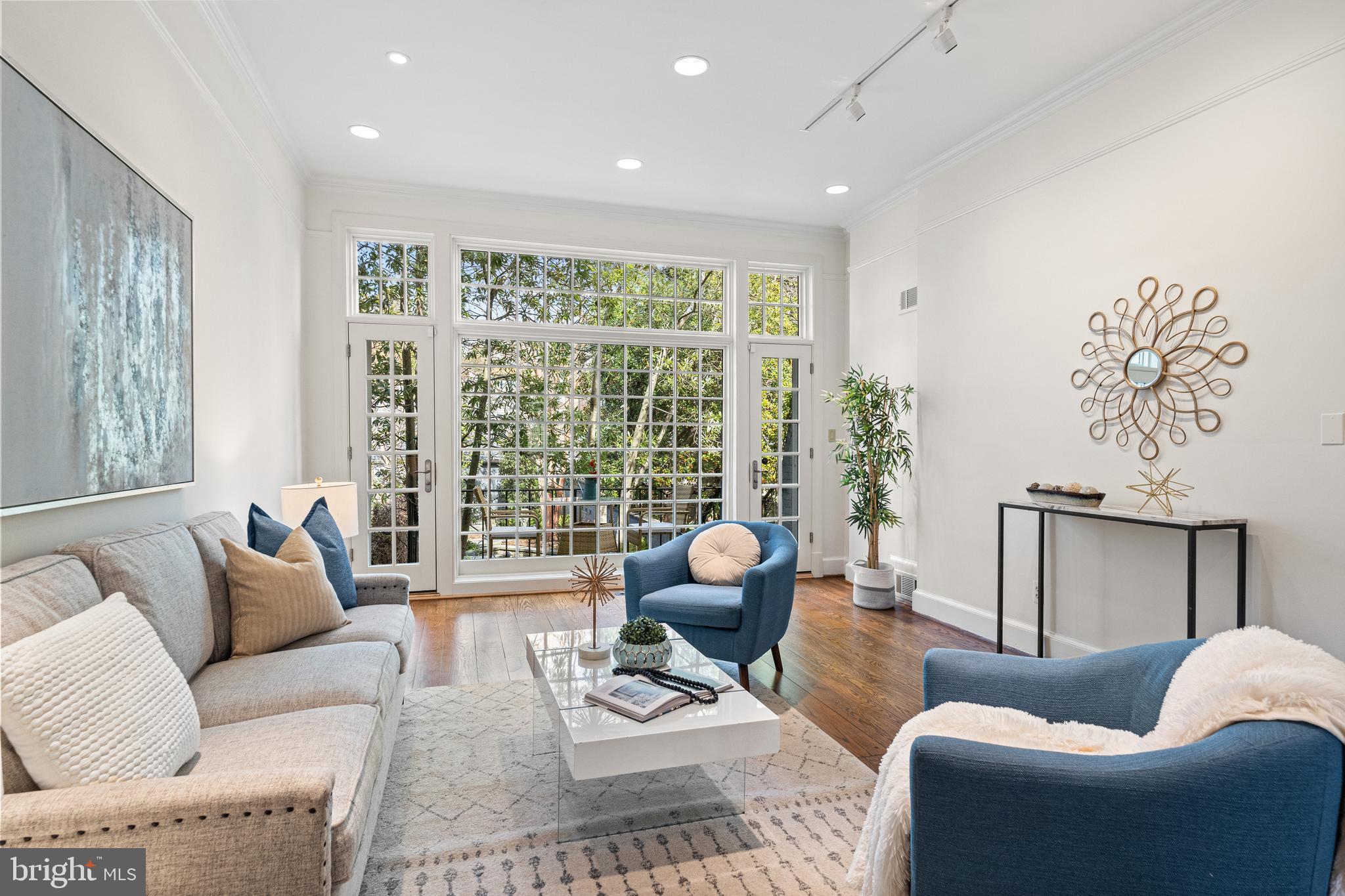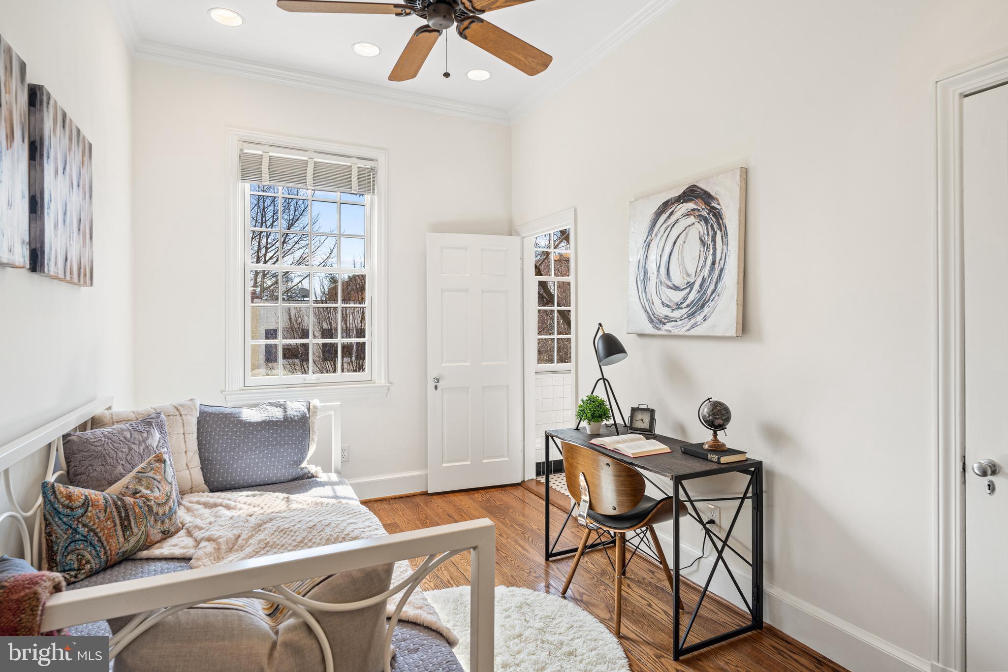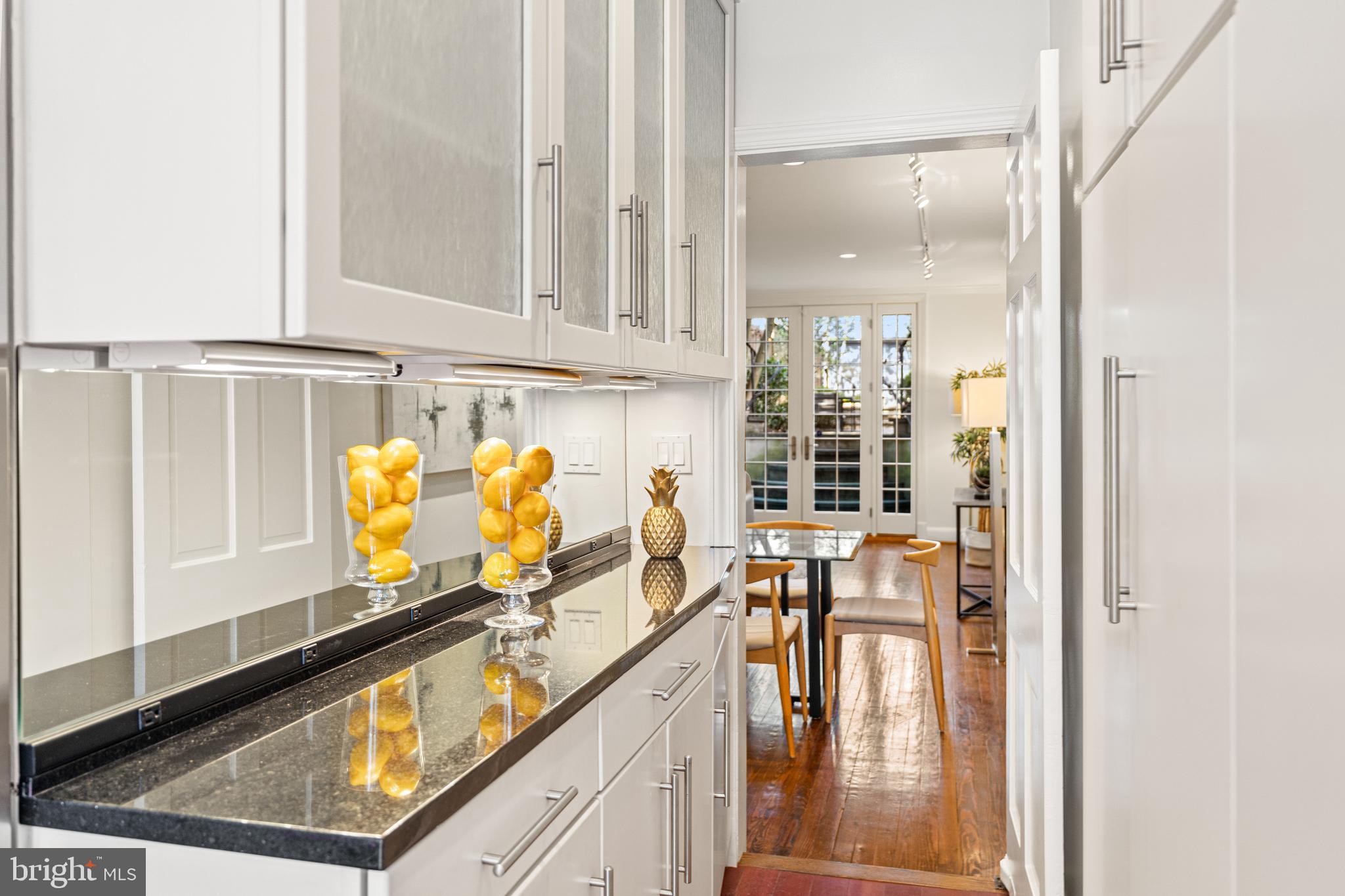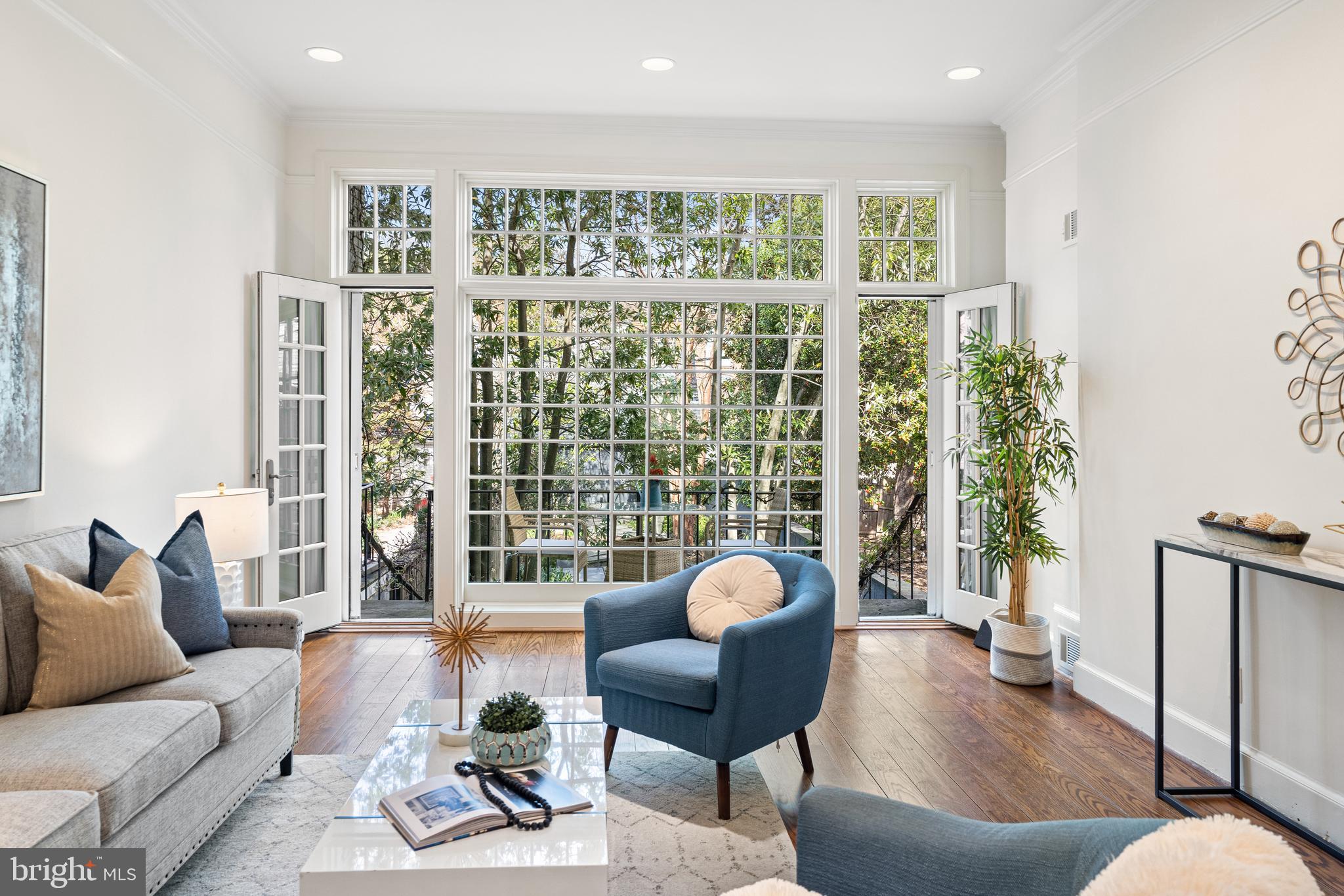 Built in 1942, this four-level Federal townhome in Georgetown's West Village offers abundant natural sunlight and pristine original period details combined with modern updates throughout. The main level affords a spacious dining and living room with immediate patio access plus an updated eat-in kitchen with heated floors and plentiful storage. Upstairs, the formal living room provides hardwood floors, soaring ceilings, recessed and track lighting, a wood-burning fireplace, and floor to ceilings windows overlooking the rear garden. The fully-finished lower level offers a private front entrance, abundant storage and two gas fireplaces. Outside, the serene backyard affords a private garden oasis, designed by Guy Williams of DCA Landscape Architects. The outdoor sanctuary features abundant entertaining space across tiered flagstone, an underground sprinkler system and garden lights. Fresh paint throughout the home and a detached garage completes the offering. 3317 Dent Place NW is located just a short walk from Volta Park, Wisconsin Avenue, M Street and countless shopping and dining venues.