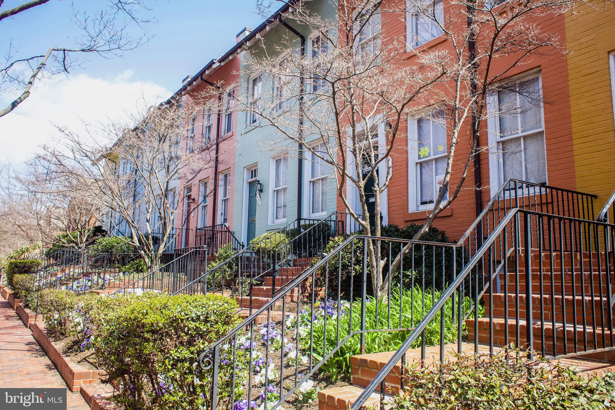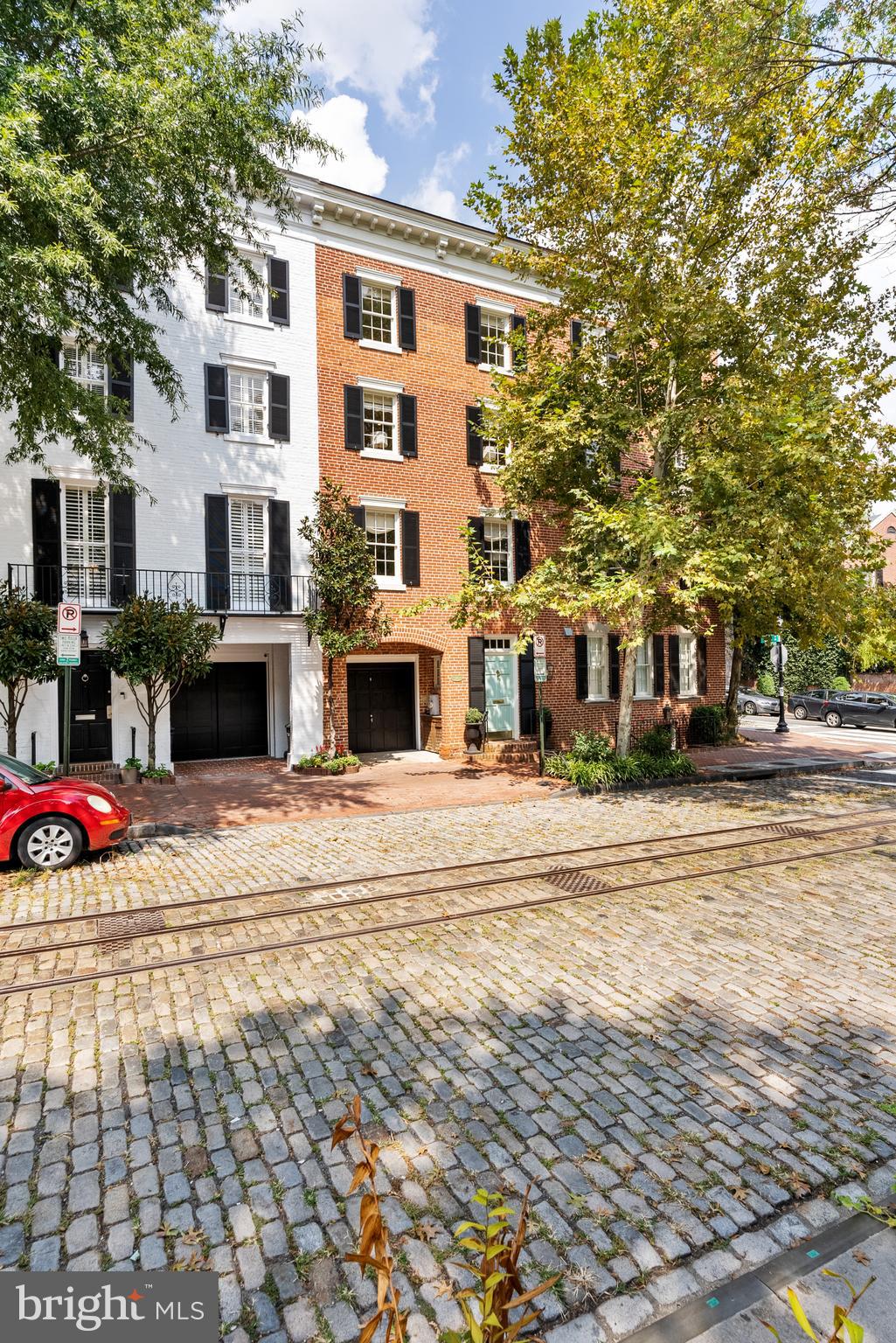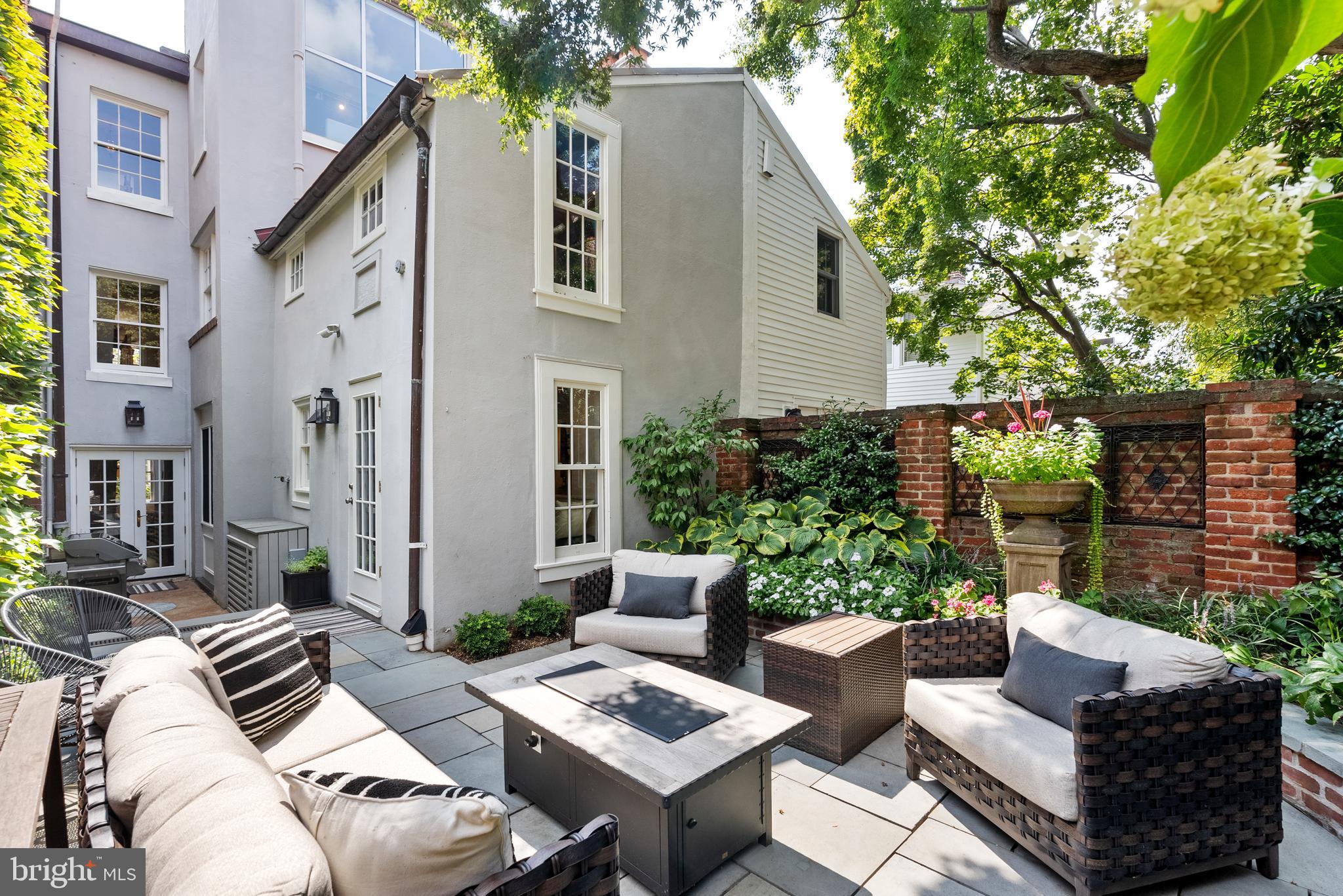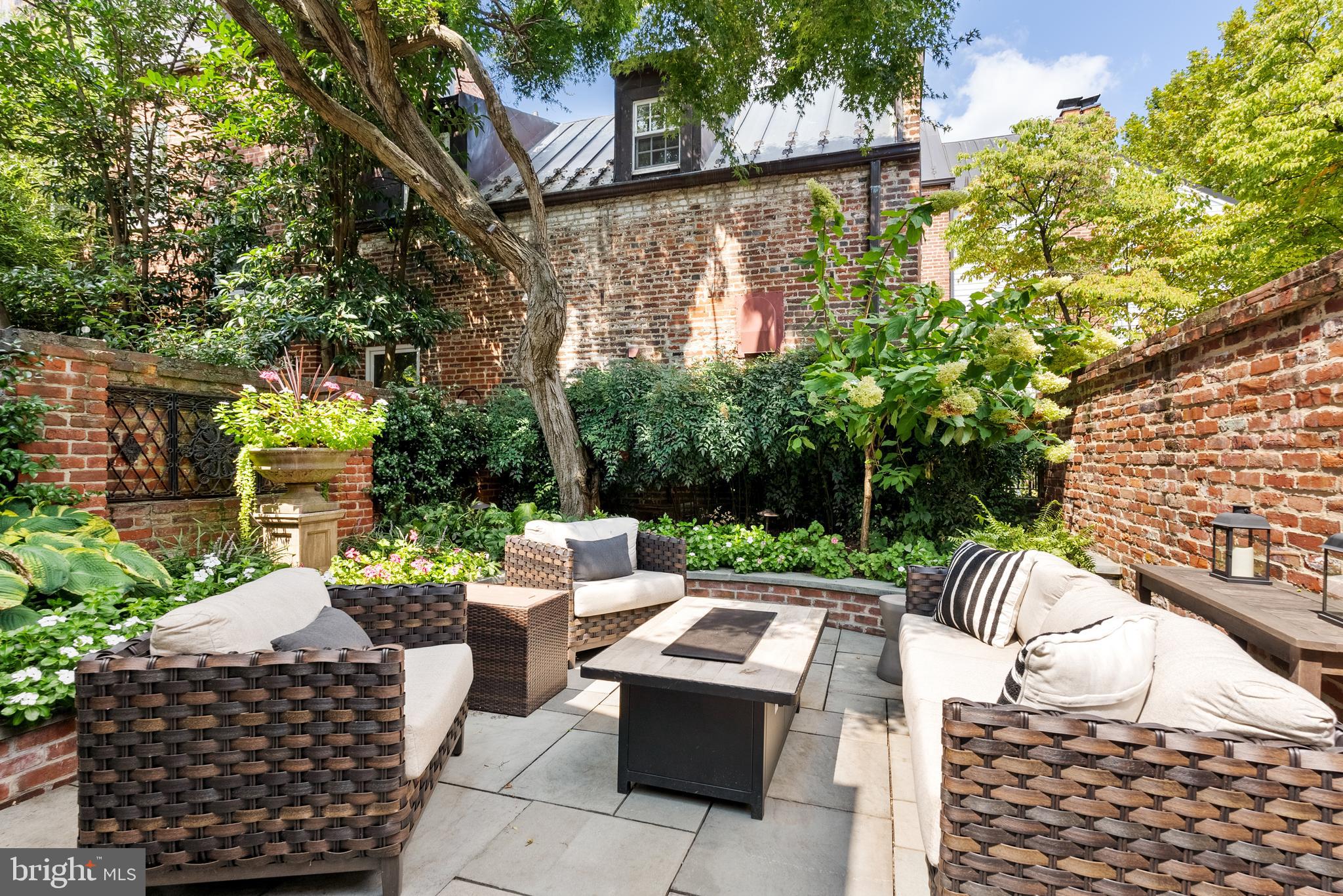 Nestled on a coveted cobblestone street in Georgetown's distinguished West Village, this exquisite four-level south-facing residence masterfully blends historic charm with modern elegance. Generous proportions, high ceilings, and gleaming hardwood floors define the sun-filled property. The expansive living and dining areas are each adorned with a cozy gas fireplace and sophisticated crown molding, creating an inviting ambiance for both relaxation and entertaining. Adjacent to the dining room, the modern kitchen provides stainless steel appliances, abundant storage, and direct access to the tranquil patio. The spacious bedrooms boast ample closet space upstairs, while the bathrooms are beautifully appointed with premium finishes and fixtures. The rear slate patio is a serene retreat, surrounded by lush landscaping and ivy-clad brick walls, perfect for outdoor gatherings. A one-car attached garage completes the offering. 3403 O Street NW is ideally located with easy access to Wisconsin Avenue's famed shopping, dining, and nightlife.