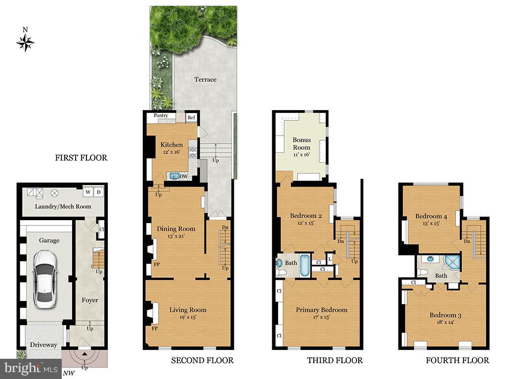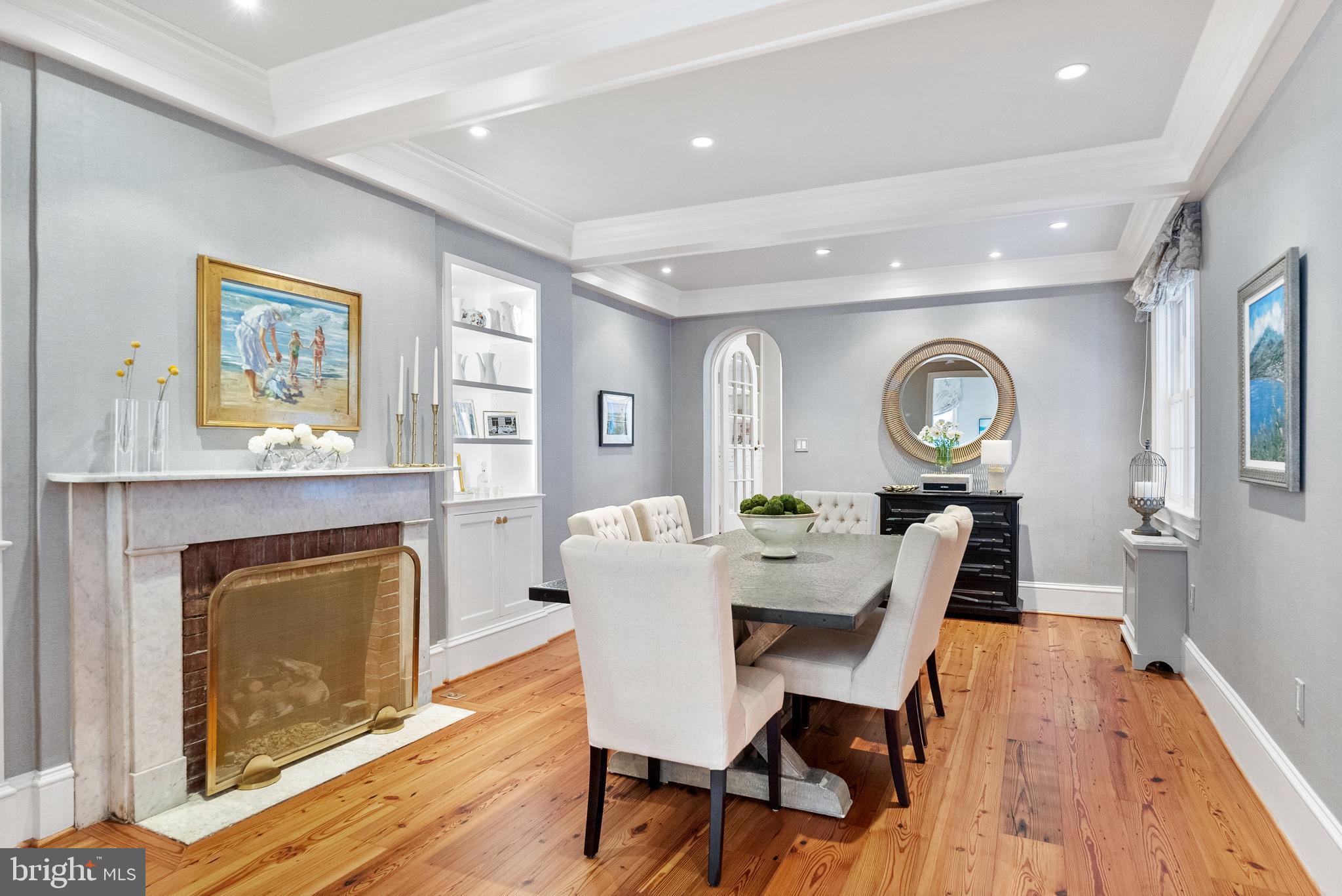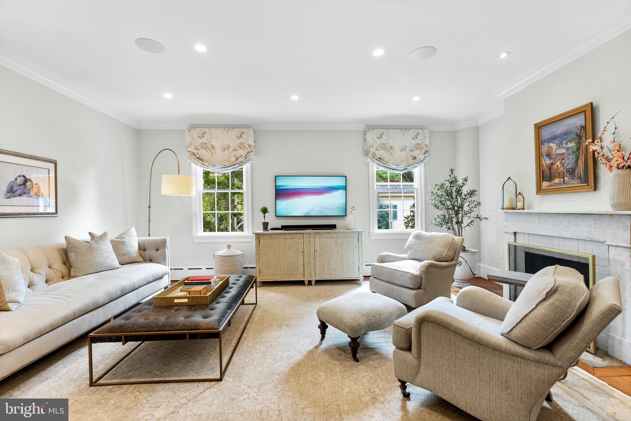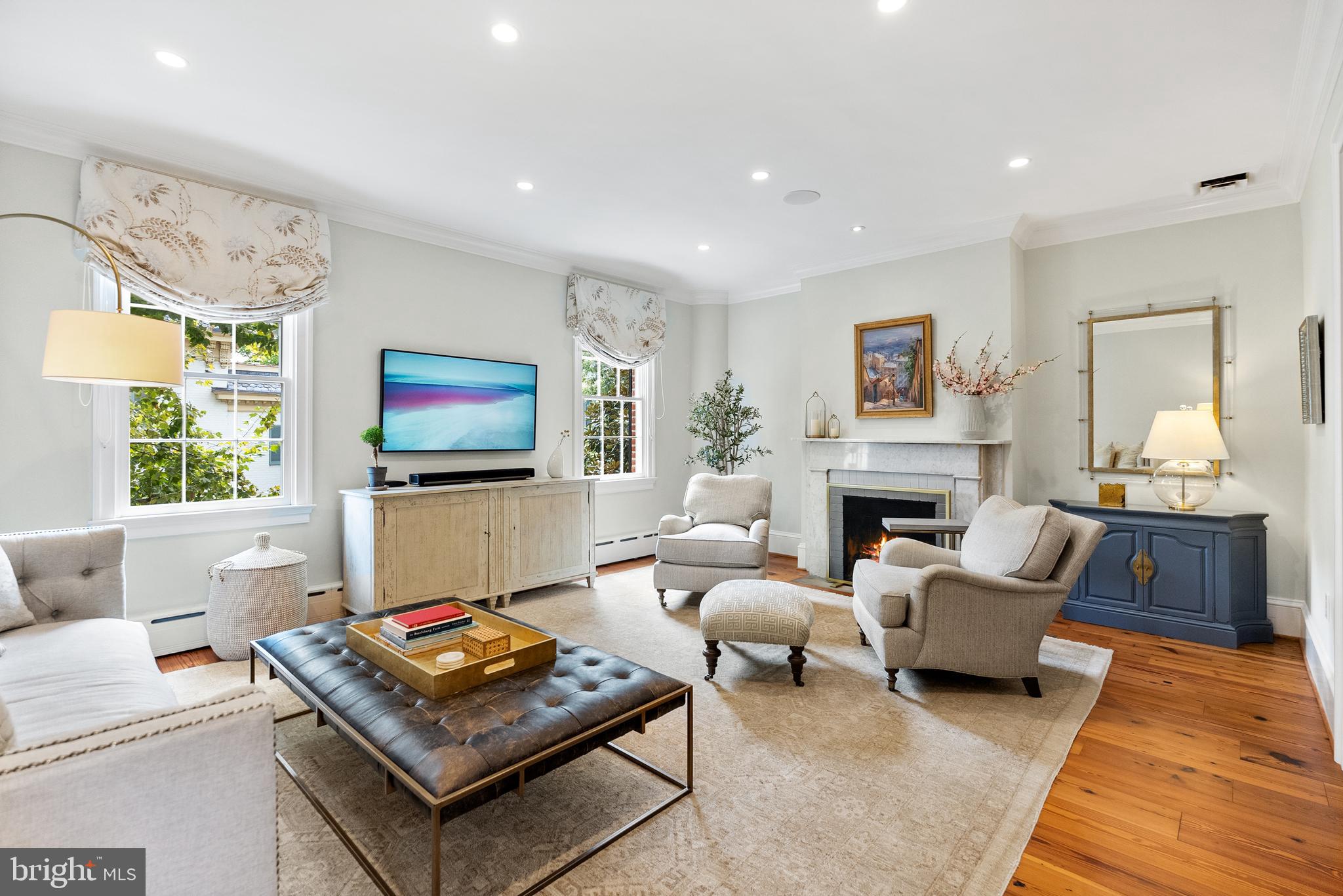 Nestled on a coveted cobblestone street in Georgetown's distinguished West Village, this exquisite four-level south-facing residence masterfully blends historic charm with modern elegance. Generous proportions, high ceilings, and gleaming hardwood floors define the sun-filled property. The expansive living and dining areas are each adorned with a cozy gas fireplace and sophisticated crown molding, creating an inviting ambiance for both relaxation and entertaining. Adjacent to the dining room, the modern kitchen provides stainless steel appliances, abundant storage, and direct access to the tranquil patio. The spacious bedrooms boast ample closet space upstairs, while the bathrooms are beautifully appointed with premium finishes and fixtures. The rear slate patio is a serene retreat, surrounded by lush landscaping and ivy-clad brick walls, perfect for outdoor gatherings. A one-car attached garage completes the offering. 3403 O Street NW is ideally located with easy access to Wisconsin Avenue's famed shopping, dining, and nightlife.