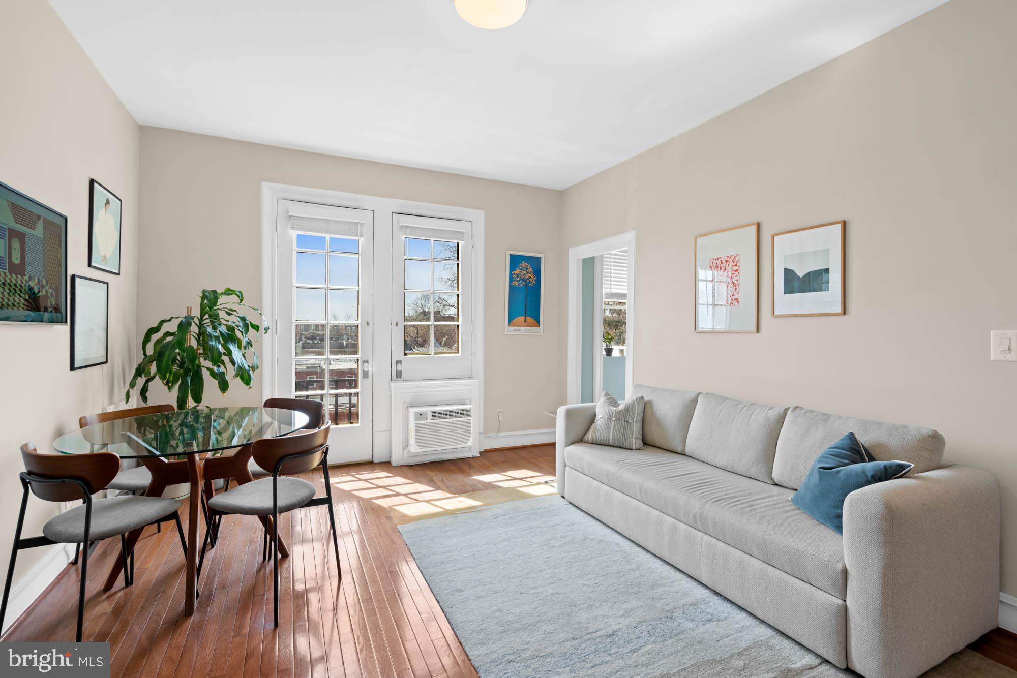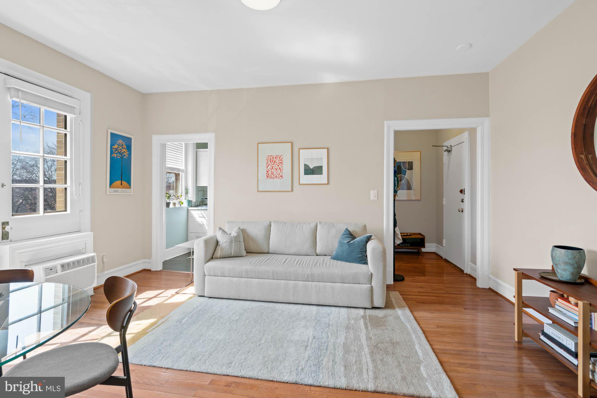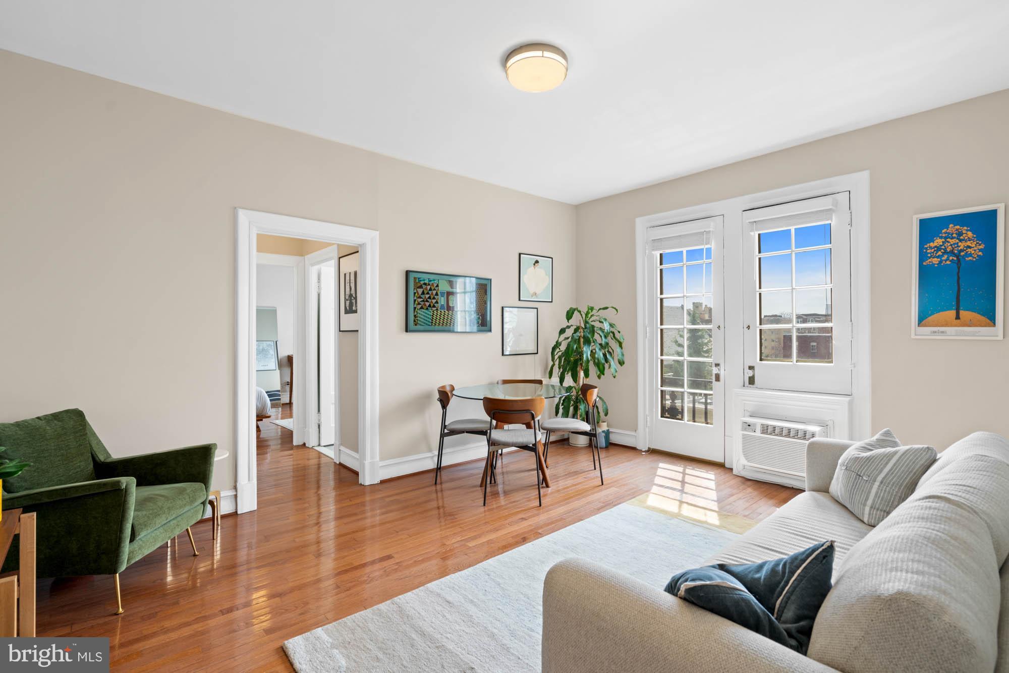 Welcome to 3420 16th St NW #405, an urban sanctuary nestled in the heart of Mount Pleasant, one of DC's quintessential residential havens. This inviting, sun-filled unit offers a seamless blend of comfort and convenience, tailored for those seeking the perfect balance of city living and relaxation. A dedicated foyer leads to the expansive open-concept living / dining room enjoying access to a private, south-facing Juliet balcony with sweeping city views, creating the perfect setting for entertaining and everyday living. The bright and cheerful kitchen features stainless steel appliances and elegant cabinetry. A highlight of this delightful residence is the primary bedroom suite, complete with a private balcony, a walk-in closet and an updated full bathroom. Additional offerings include a common area laundry room, bike storage, dog park, resident parking, and future plans for an expansive roof-top deck. A wonderful opportunity to live in a historic, pet-friendly, elevator building in a vibrant local scene close to an array of businesses, captivating shops, Metro/bus, and steps away from cozy restaurants like Elle, La Tejana, Martha Dear, Purple Patch, and others. This highly accessible location offers easy access to the National Smithsonian Zoo, Rock Creek Park, Adams Morgan, Woodley Park, Columbia Heights, Dupont, and Kalorama, making it a truly exceptional place to call home.