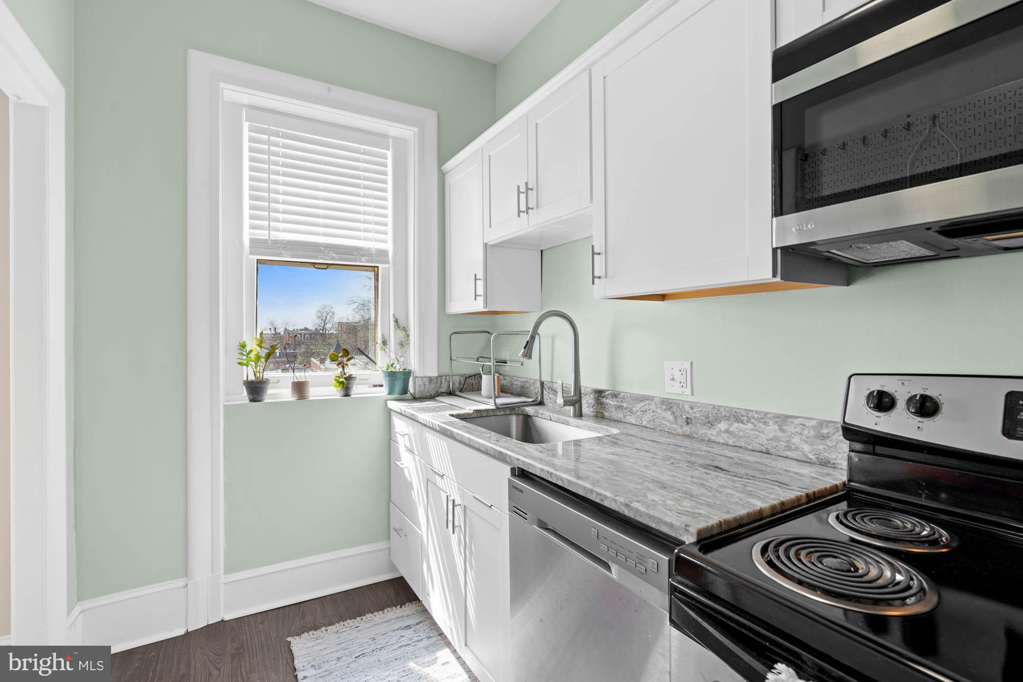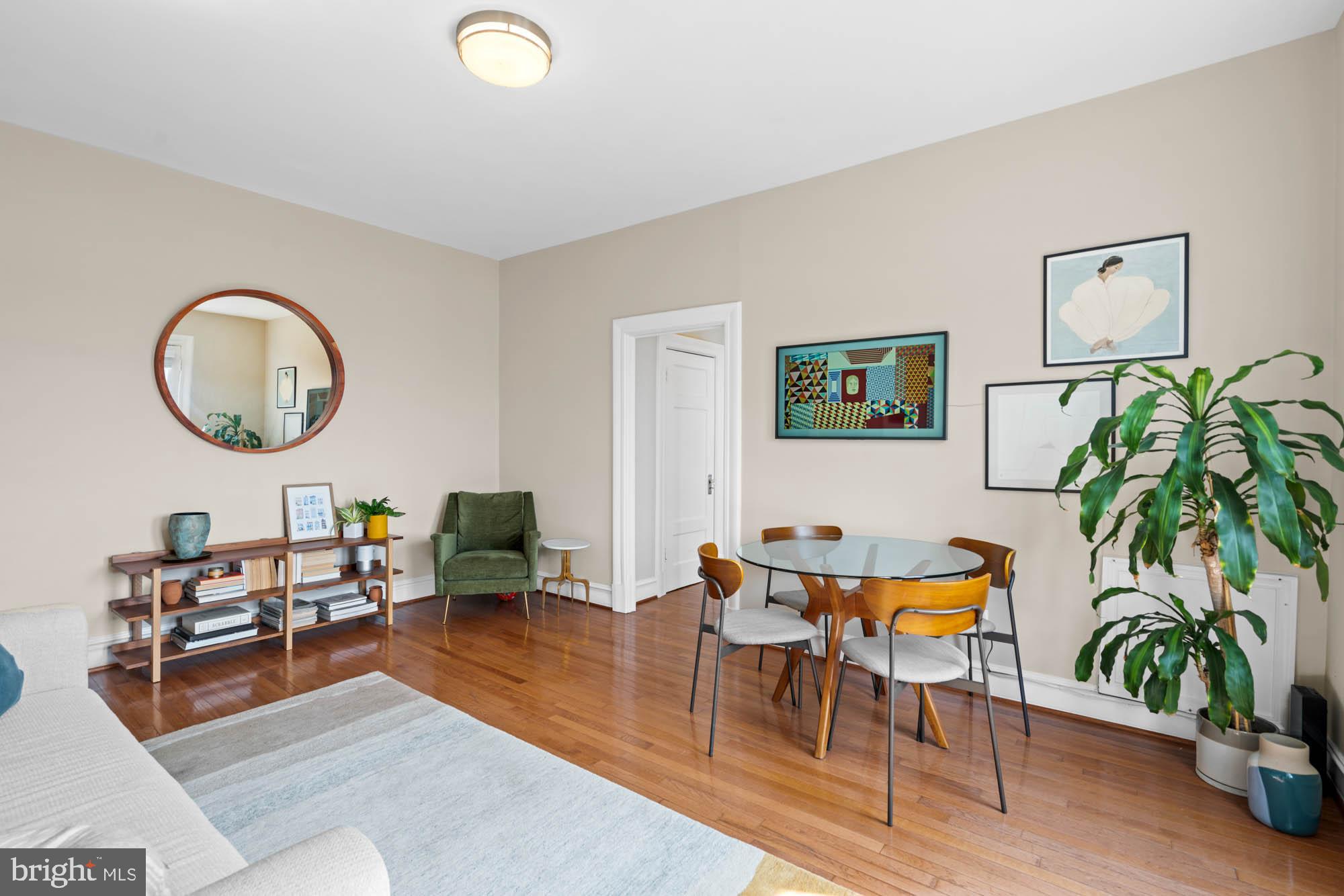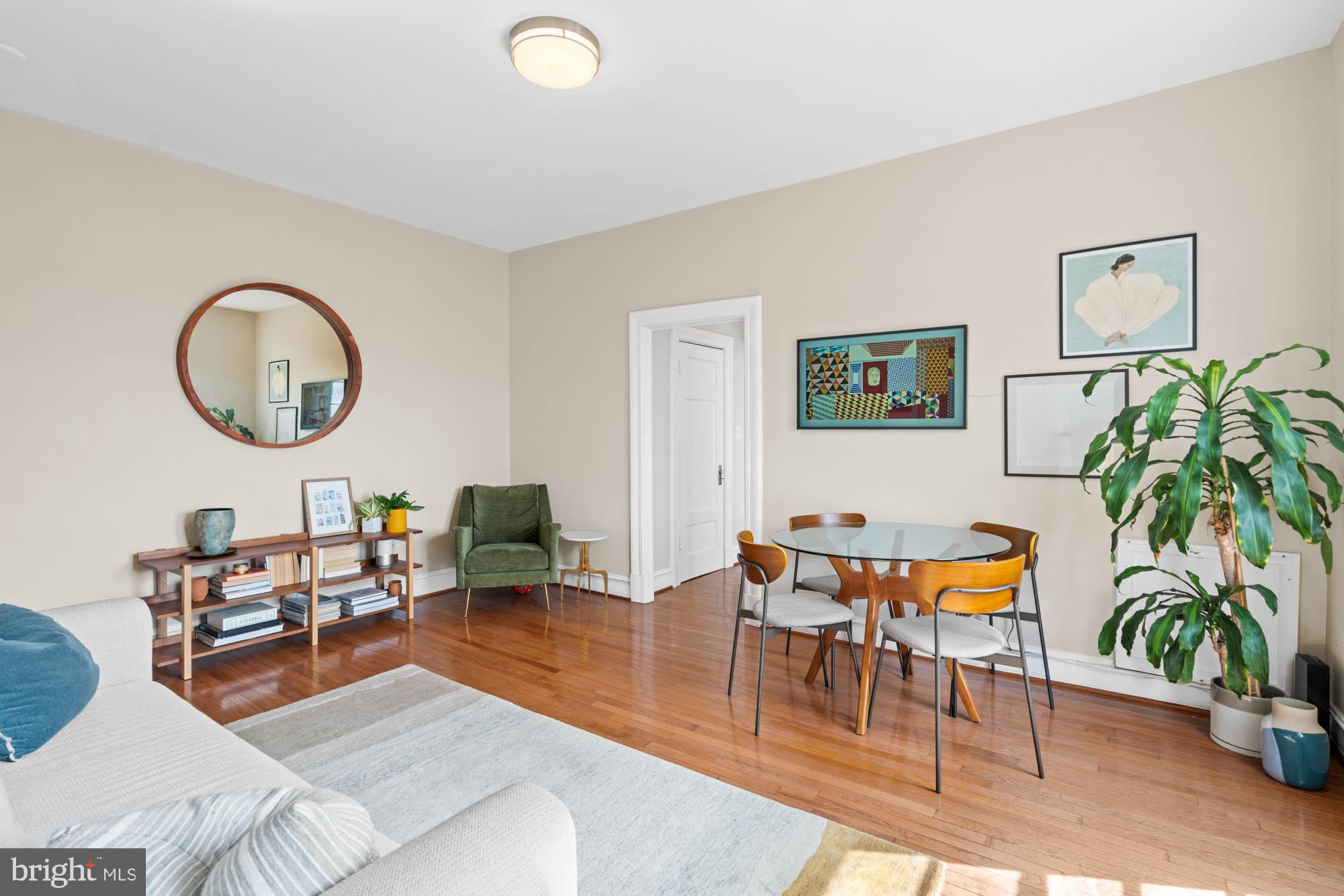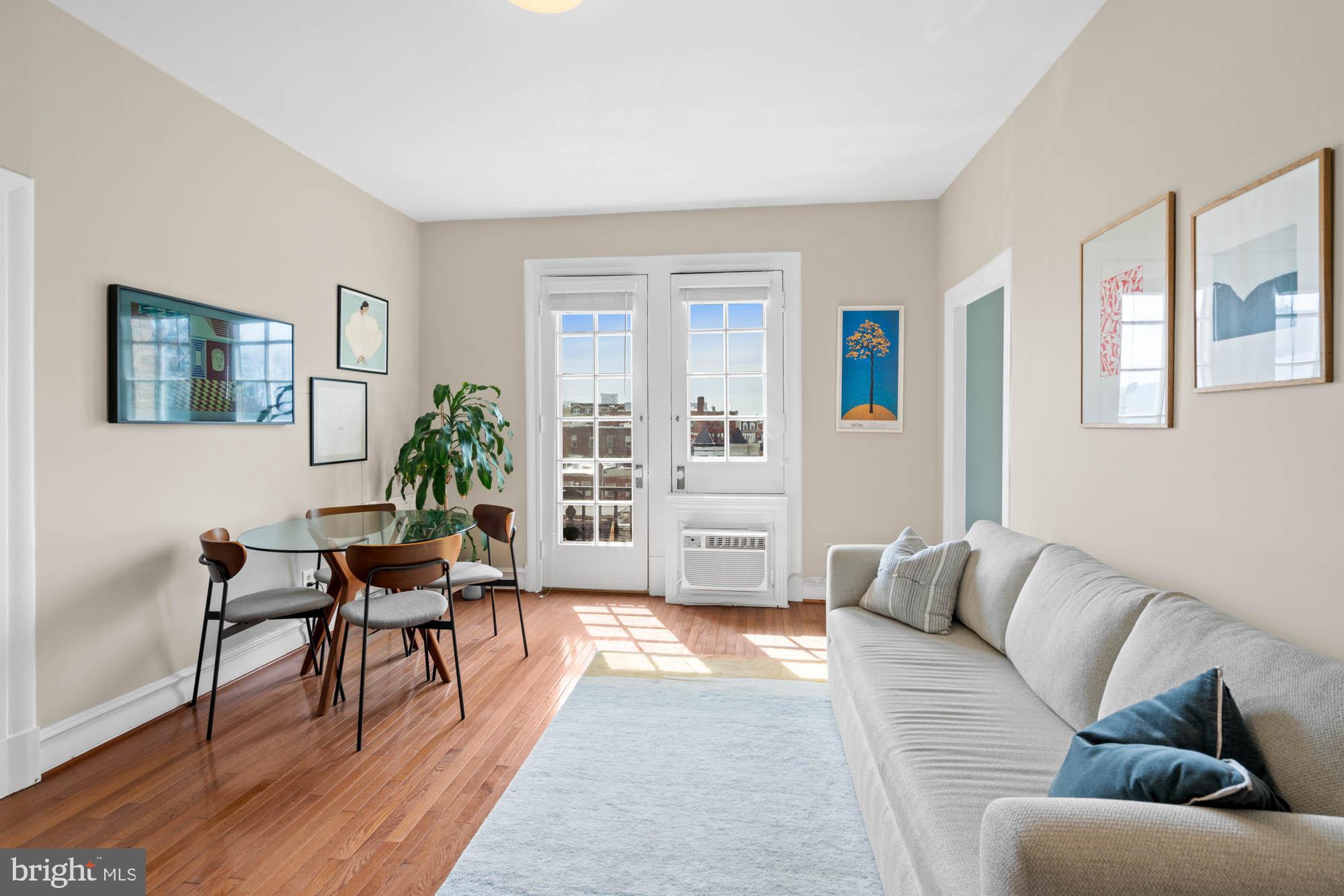 Welcome to 3420 16th St NW #405, an urban sanctuary nestled in the heart of Mount Pleasant, one of DC's quintessential residential havens. This inviting, sun-filled unit offers a seamless blend of comfort and convenience, tailored for those seeking the perfect balance of city living and relaxation. A dedicated foyer leads to the expansive open-concept living / dining room enjoying access to a private, south-facing Juliet balcony with sweeping city views, creating the perfect setting for entertaining and everyday living. The bright and cheerful kitchen features stainless steel appliances and elegant cabinetry. A highlight of this delightful residence is the primary bedroom suite, complete with a private balcony, a walk-in closet and an updated full bathroom. Additional offerings include a common area laundry room, bike storage, dog park, resident parking, and future plans for an expansive roof-top deck. A wonderful opportunity to live in a historic, pet-friendly, elevator building in a vibrant local scene close to an array of businesses, captivating shops, Metro/bus, and steps away from cozy restaurants like Elle, La Tejana, Martha Dear, Purple Patch, and others. This highly accessible location offers easy access to the National Smithsonian Zoo, Rock Creek Park, Adams Morgan, Woodley Park, Columbia Heights, Dupont, and Kalorama, making it a truly exceptional place to call home.